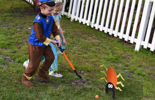 Have no fear, your kids will ace this DIY! Create frightfully funny characters that turn an ordinary game of golf into a sporty Halloween treat. The whole family can participate in making this monster golf set and laying out a tricky course on the lawn. Best of all, hand-eye coordination and gross motor skills are put into play while the littles are having fun. Now that’s a hole-in-one!