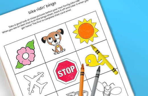 Ready to hit the road with the fam? Before you go, check out this 2-in-1 game! It’s a memory game and a bingo card! Have your kids study the pictures on the card and when they come across items on their bike ride, call it out or make a mental note of it. When they get home, mark and color each item they saw. Whoever finishes the card first takes 1st place in this Tour de Fun! Happy & Safe Bike Month!
