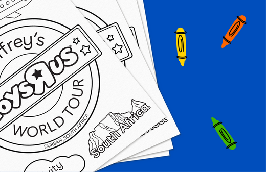 Parents, grab your kids and join Geoffrey as he tours the world with Toys"R"Us kids by his side. Learn about each country and print out fun activities as you watch along on Youtube! Geoffrey just landed in South Africa!