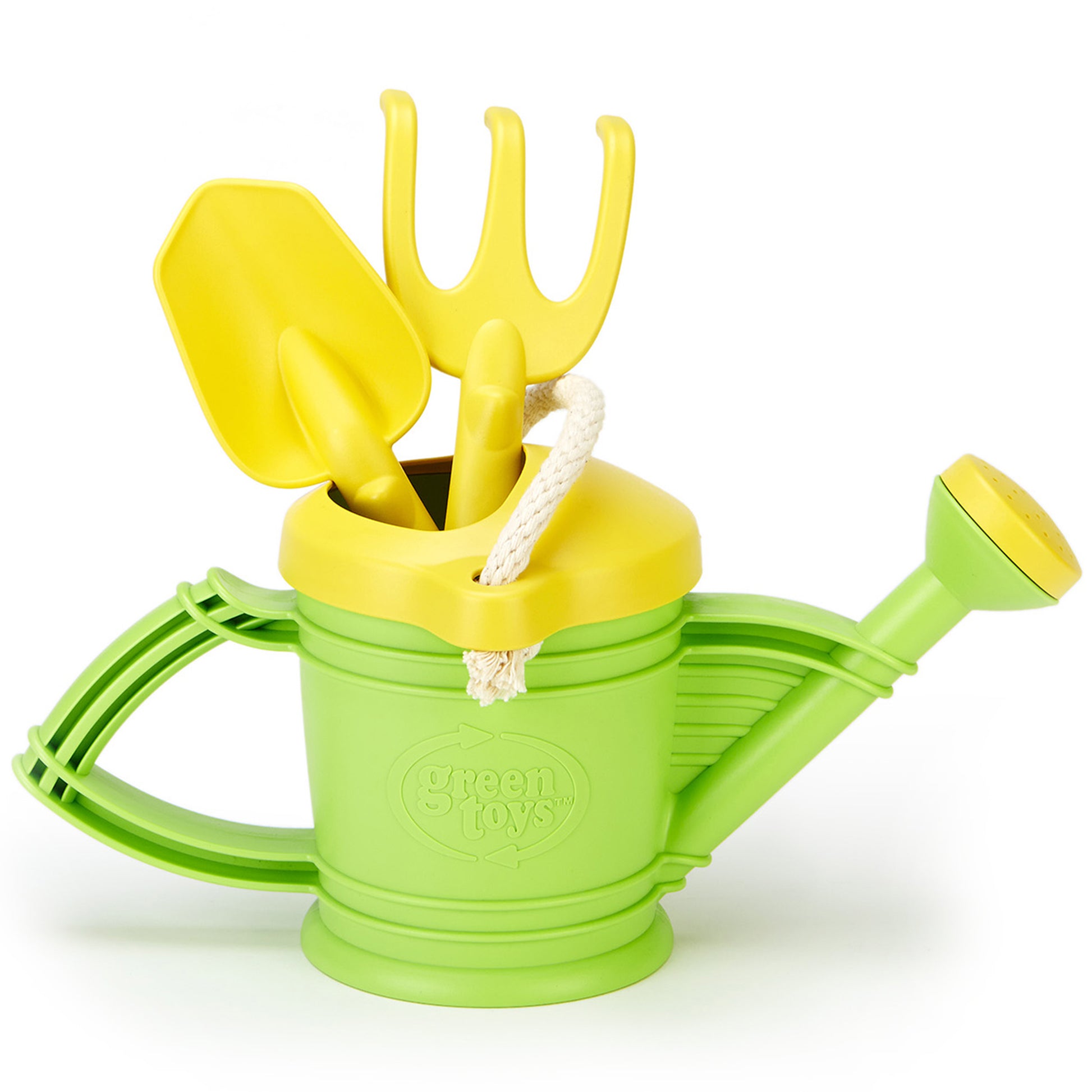 The Green Toys: Watering Can - Green - 3pc Tool Set, Hand Rake & Shovel, 18mo+ features: