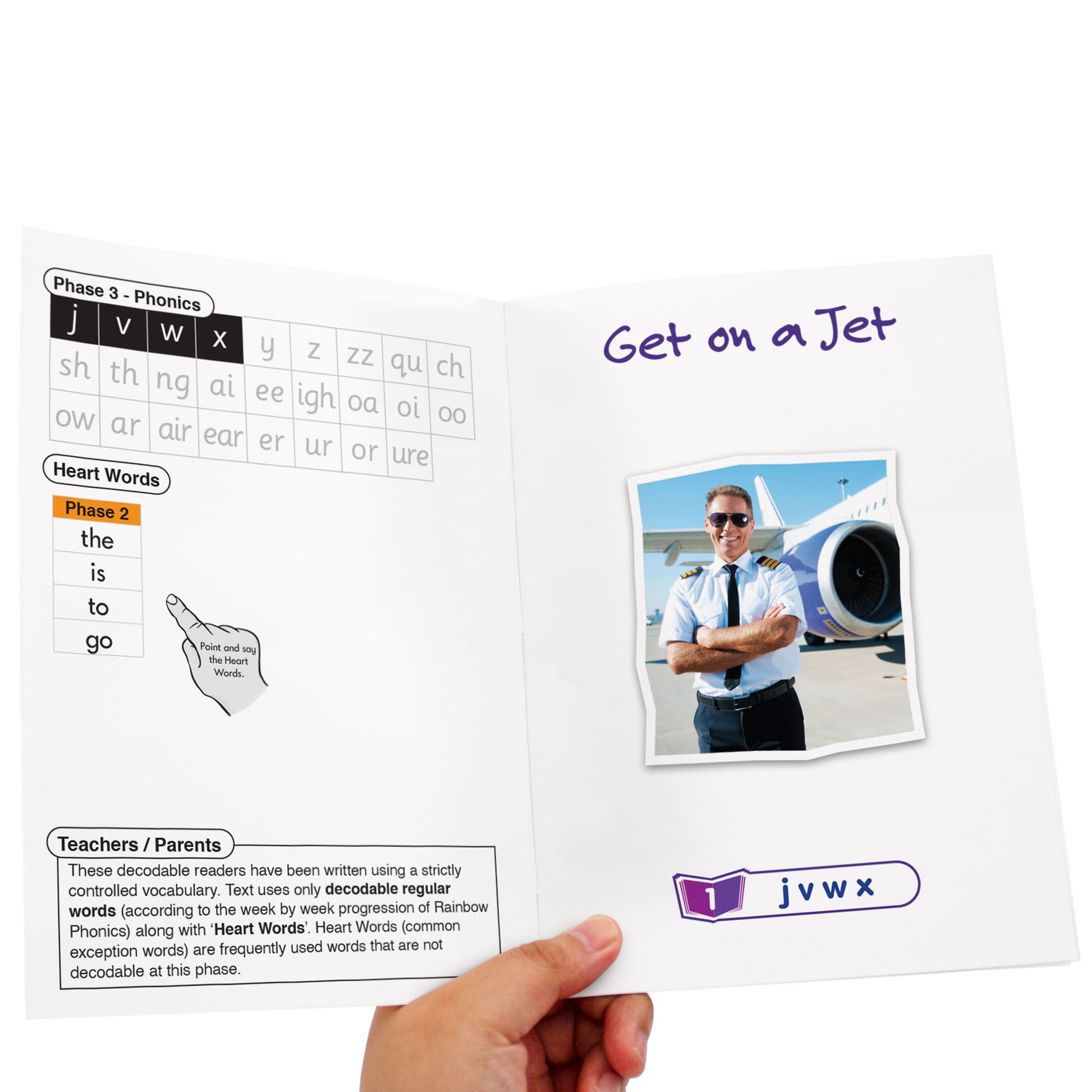 The Junior Learning Rainbow Phonics 6-Book Set features: