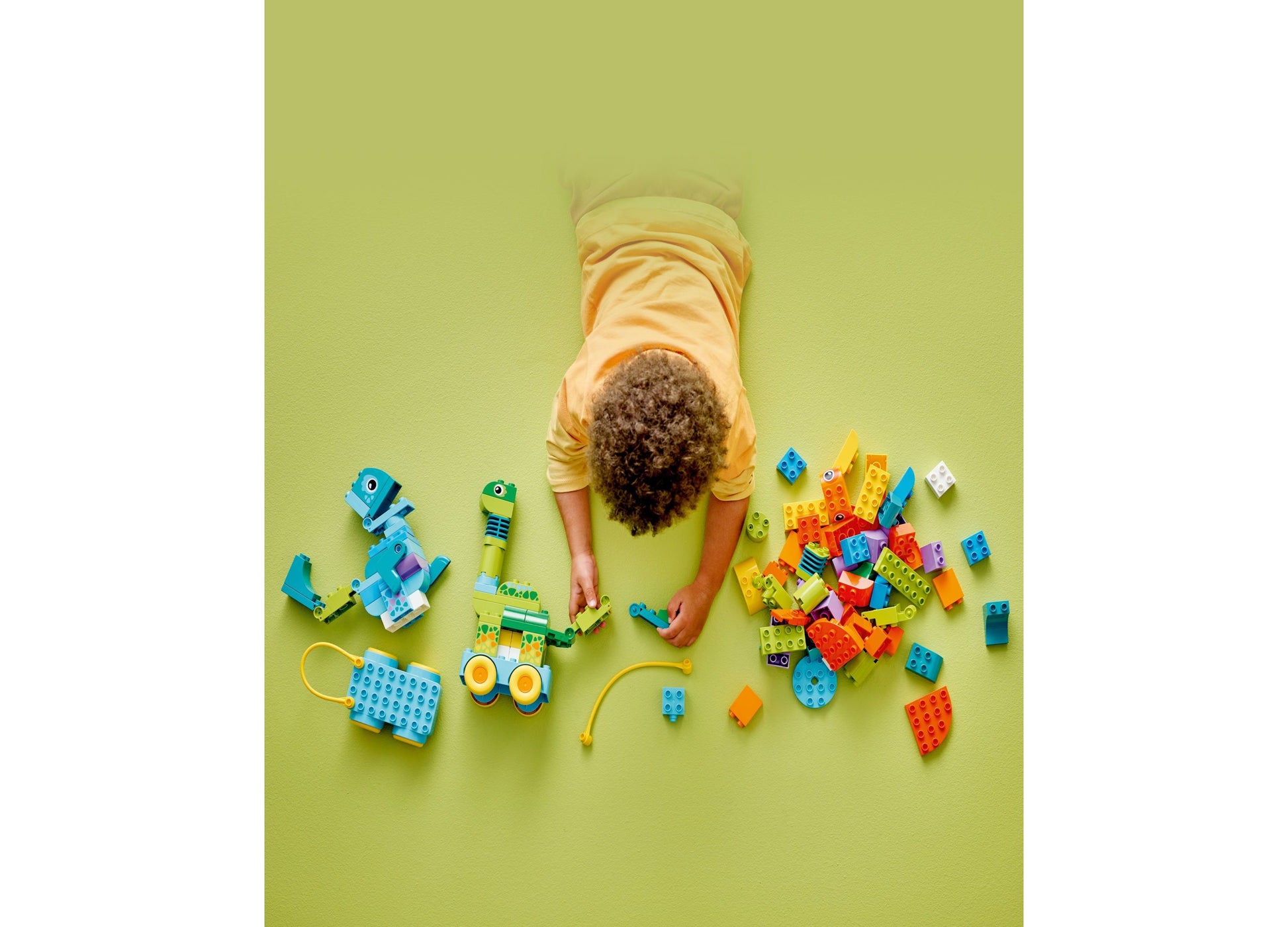 The LEGO DUPLO Town 3 in1 Dinosaurs on Wheels 10451 Toy Building Set, 108 Pieces, features: