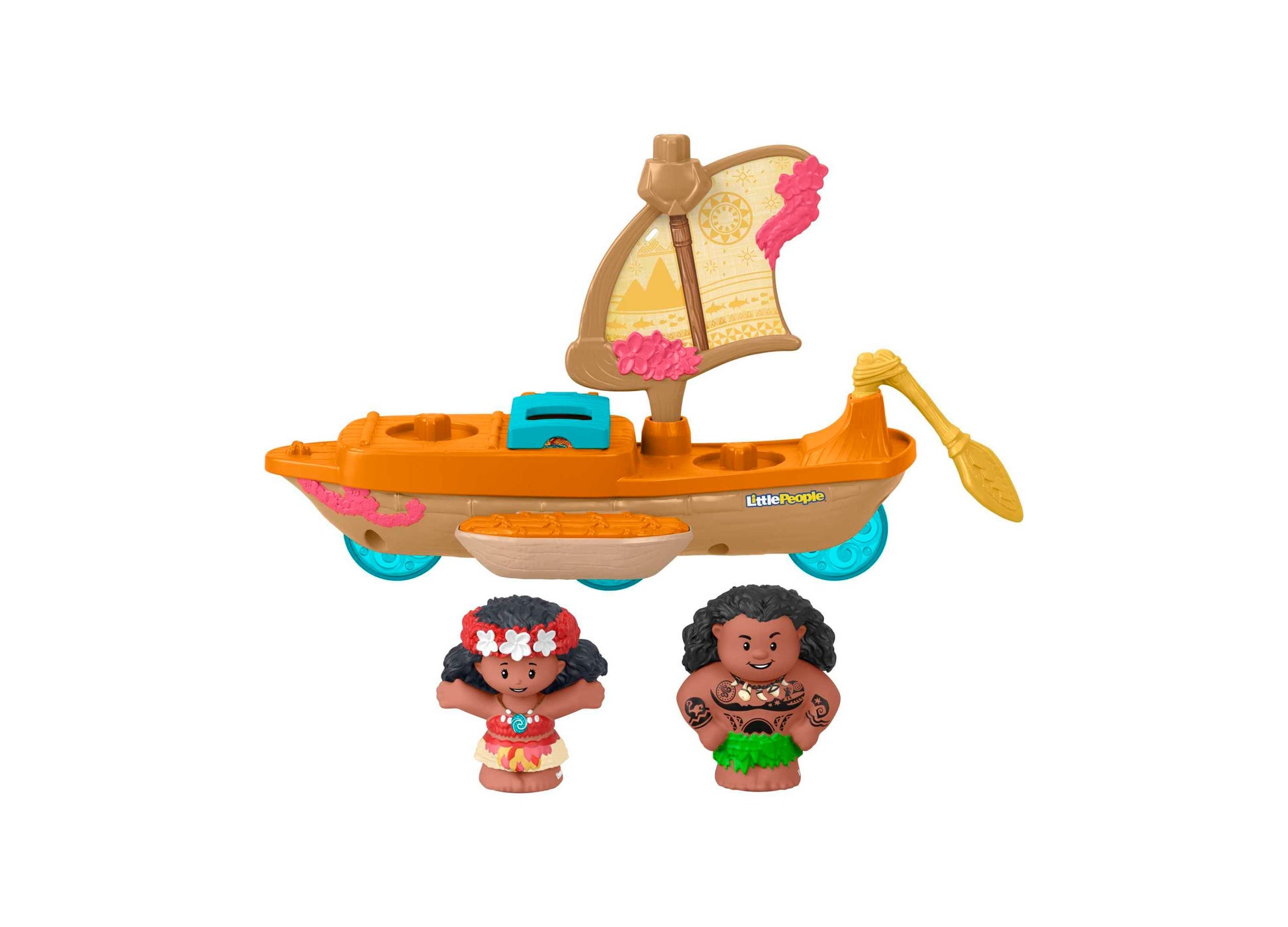 Set sail on magical adventures with Fisher-Price Little People Disney Moana & Maui! Watch toddlers' faces light up as rolling creates realistic wave motion. Features spinning oar, pivoting sail & surprise Heihei in hidden compartment. Perfect for imaginative play & developing motor skills in kids 1.5-5 years. Shop now on toysrus.com for endless ocean adventures with Moana & Maui!