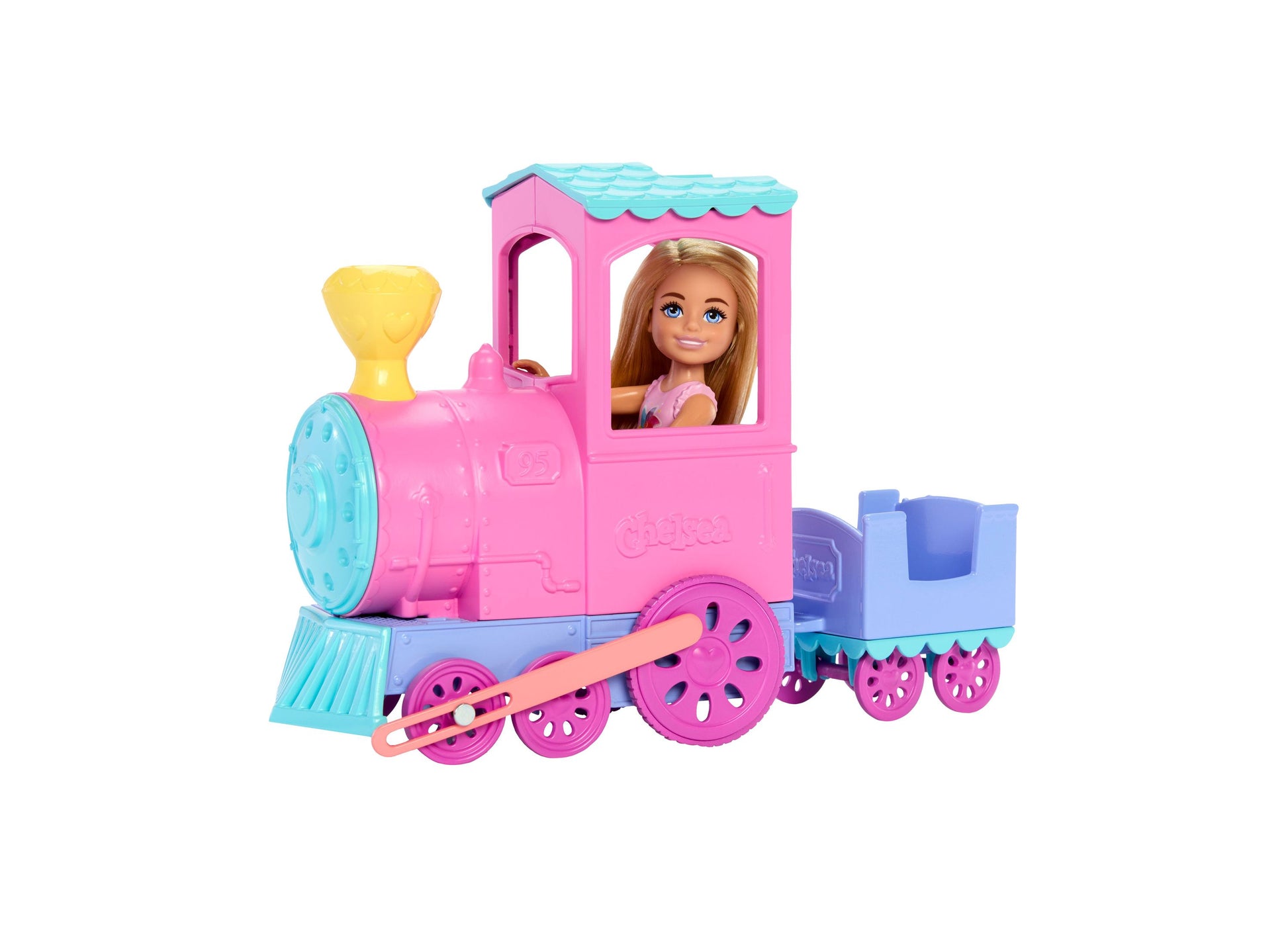 All aboard with Chelsea This Barbie Day at the Fair playset is choo-choosing with fun featuring a toy train with 10 wheels that really roll and an attachable car. Help Chelsea doll hops on, then push to get the adventures rolling Accessories include starry sunglasses and a lollipop that really fits in Chelsea doll's hand. Kids have everything they need to play out a day at the fair filled with fun and magic. Colors and decorations may vary. Doll cannot stand alone.