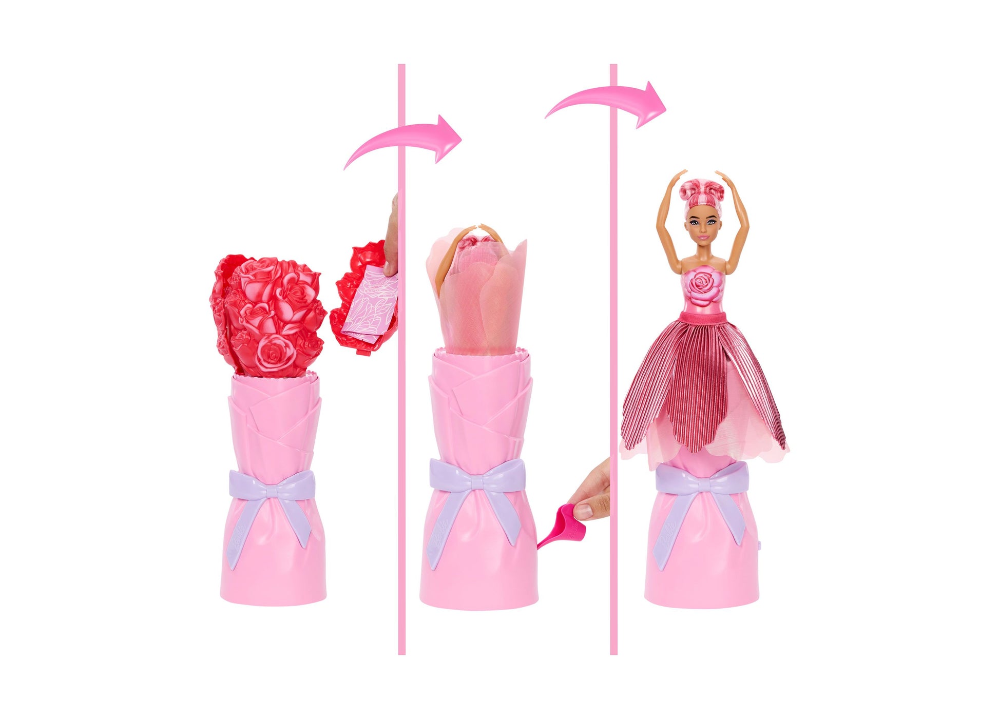 The Barbie Petal Pop Scented Fashion Doll features: