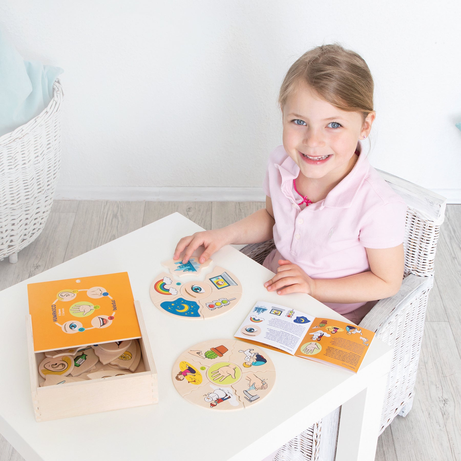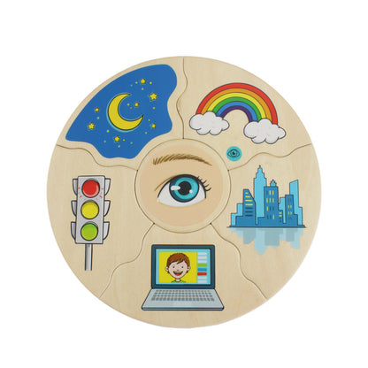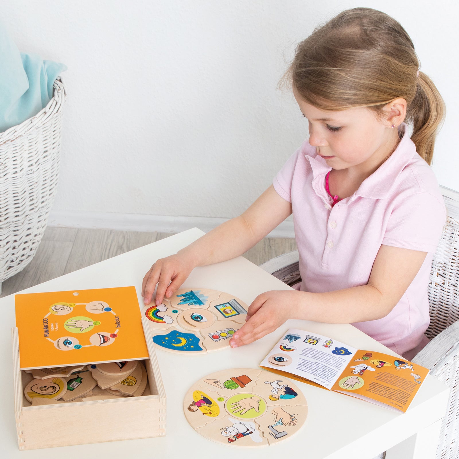 Explore the magic of senses with the Beleduc Humanico 5 Senses Puzzle! This 30-piece plywood puzzle is a fantastic tool for children to learn about vision, hearing, smell, taste, and touch. Bright, engaging illustrations on each piece spark discussions and playful learning, making it an excellent choice for educational fun. Provided in a sturdy wooden box, it ensures easy storage and durability for endless play sessions.