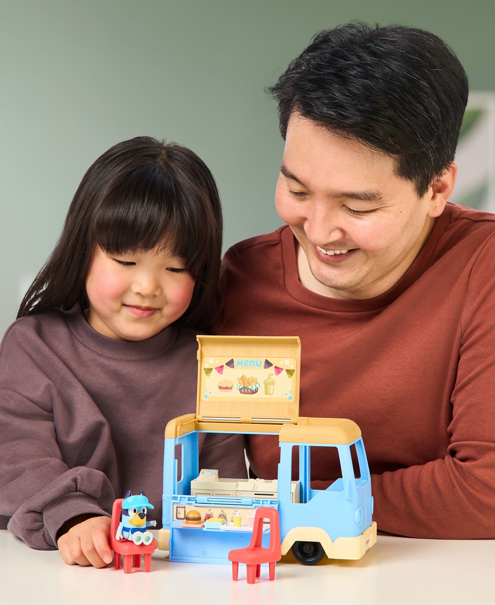 Cook up imaginative adventures with the Bluey Let's Play Chef Food Truck Playset! Transform from food truck to restaurant in seconds and serve pretend meals with the included 3" articulated Bluey figure. Flip the roof open, fold out the dining area & let your little chef create endless kitchen fun. Perfect for kids ages 3+ who love Bluey—shop now on toysrus.com!