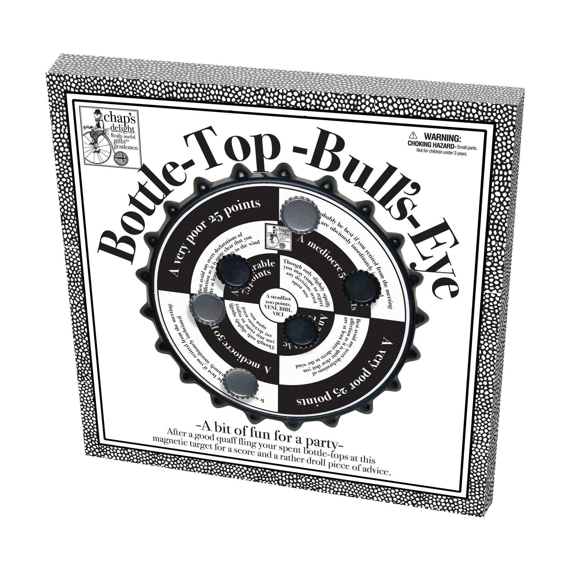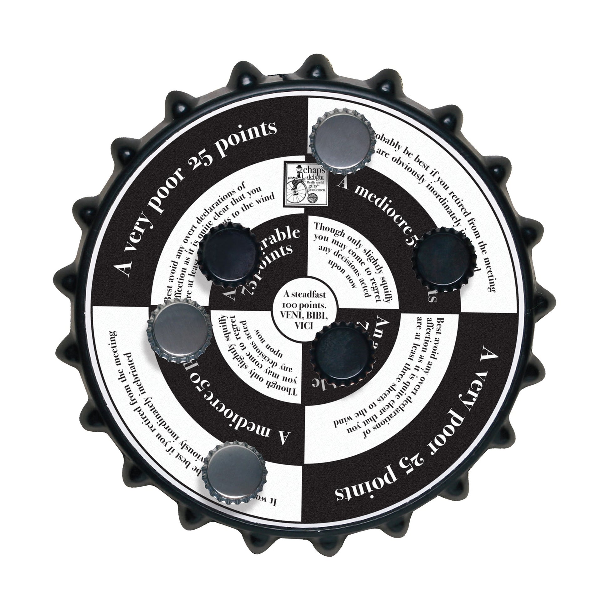 Aim, toss, and giggle with the Bottle-Top Bull's-Eye, the ultimate party game to liven up any gathering! Spin the cap off your favorite fizzy drink and challenge friends and family to hit the magnetic target board. Perfect for indoor fun, this game will turn your party into a laughter-filled competition. Make every pop a bull's-eye!
