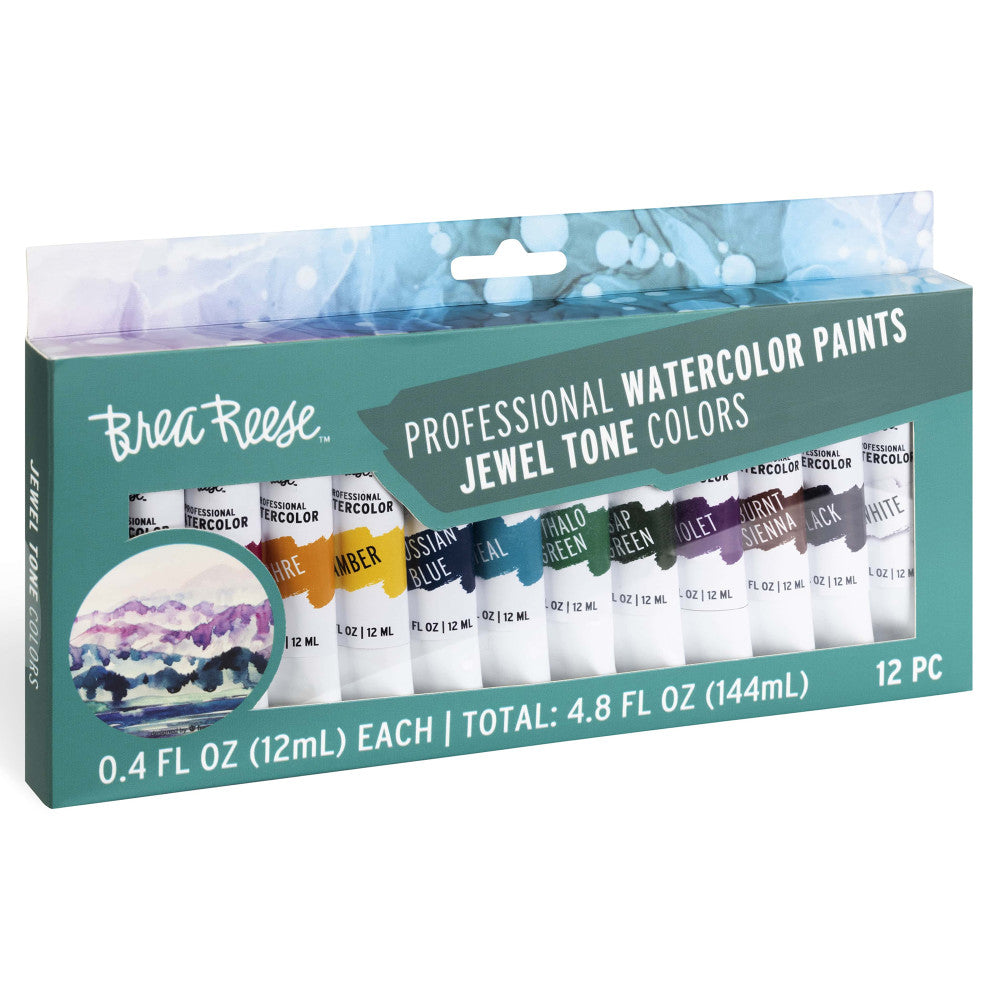 Paint your world with a spectrum of brilliance using the Brea Reese Professional Watercolor Paint Set - Jewel Tones - 12 Tubes. Immerse yourself in a palette of gemstone-like colors, including vivid amethyst, deep sapphire, and lush emerald, designed to bring your artistic visions to life. Flaunt the luxurious matte finish as you blend these opulent hues to create rich details and soft transitions, perfect for everything from grand landscapes to intricate portraits.