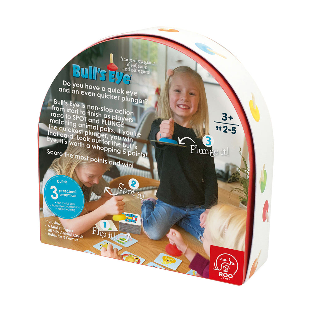 Prepare to jump into a whirlwind of giggles and grins with Bull's Eye, a delightful card and plunger game designed to entertain and engage players of all ages. This game by Roo Games combines strategy with a dash of luck, featuring adorable animal cards and mini plungers that add a unique twist to gameplay. Perfect for 2 to 5 players, Bull's Eye is an excellent choice for game nights, parties, and family gatherings.