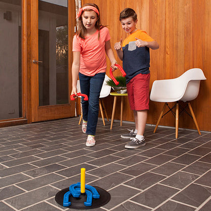 Saddle up for exciting horseshoe fun with Champion Sports Rubber Horseshoe Set! Toss colorful, eye-catching horseshoes on bright rubber mats for engaging indoor-outdoor play. Weather-resistant and ready for action right out of the box. Shop now on toysrus.com and let the games begin!