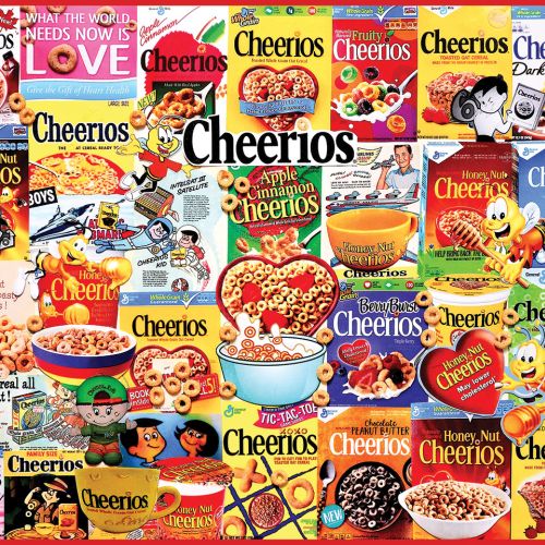 The Cheerios Iconic Cereal Box Collage Jigsaw Puzzle features: