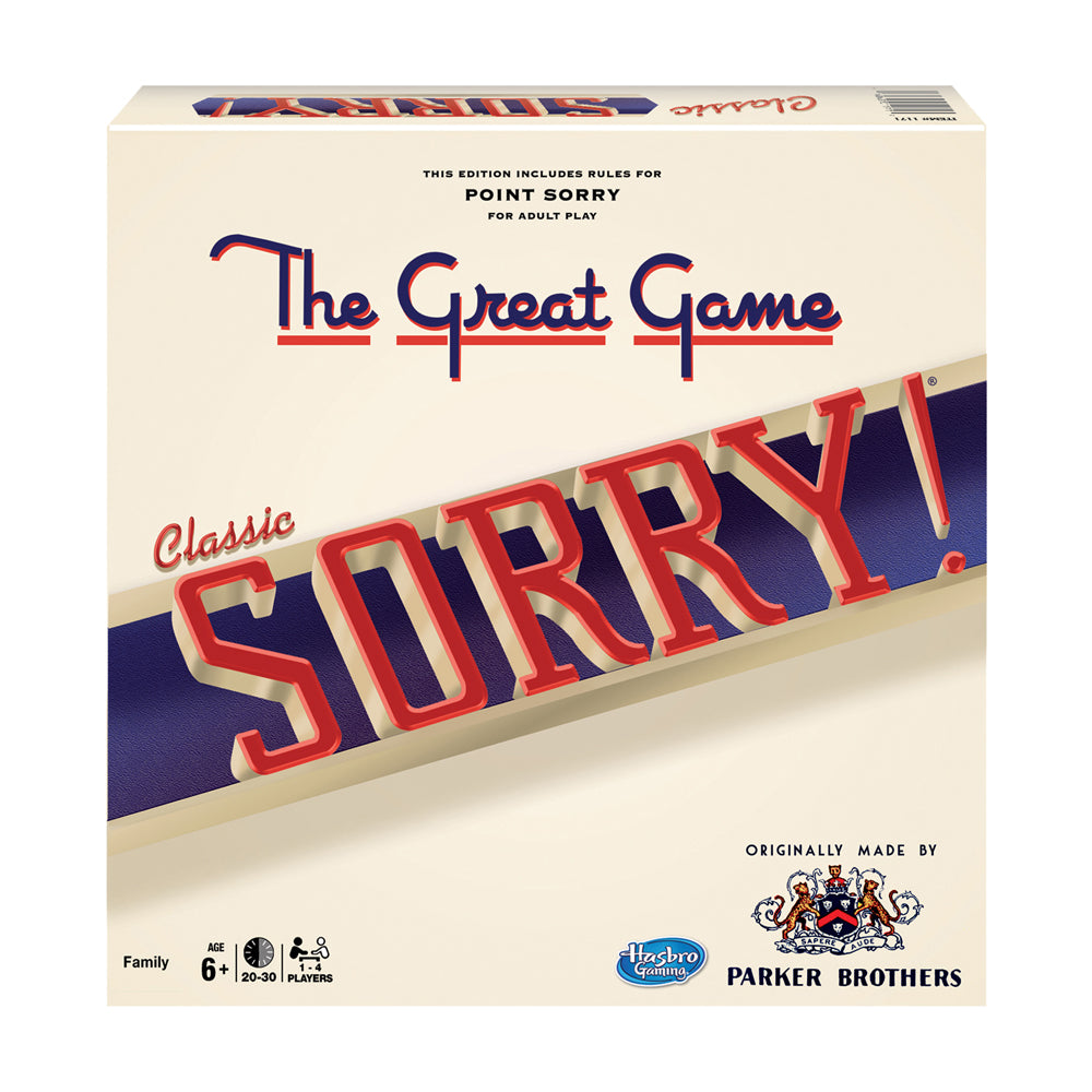 Let the game-time magic commence with the Classic Sorry Board Game! This family favorite challenges players to strategically navigate the board with their pawns to reach the safety zone first. With its nostalgic original artwork and high-quality game components, Classic Sorry provides endless fun and competitive gameplay for all ages. Perfect for game nights, this engaging board game ensures laughter and joy as players apologize their way to victory!