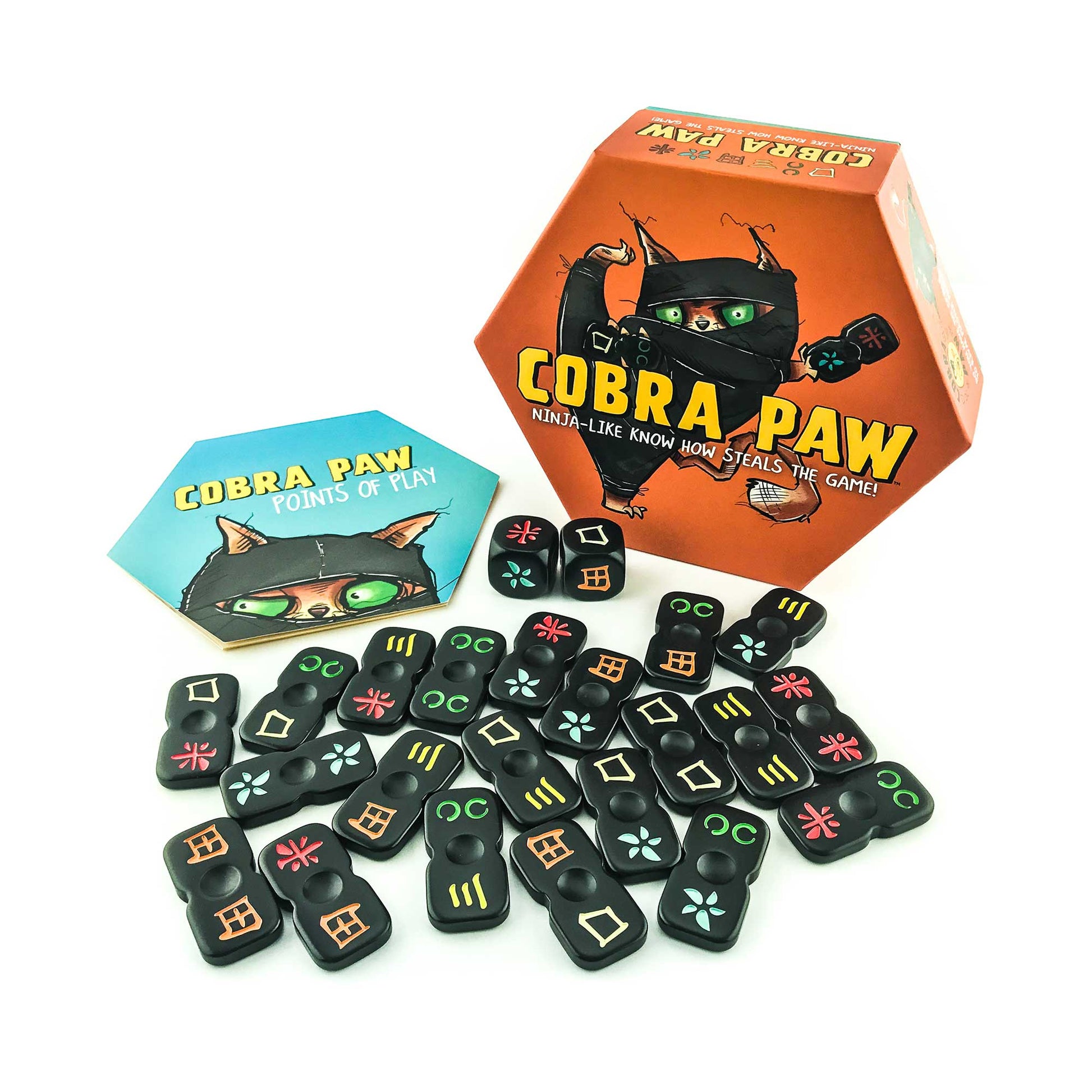 Snatch victory from the claws of defeat with Cobra Paw! This fast-paced, ninja-themed tile-snatching game demands sharp recognition skills and lightning-fast reflexes. Engage in this thrilling chase as you roll the dice, spot the matching symbol, and battle to grab the coveted tiles. Perfect for family game nights, Cobra Paw is an exhilarating test of honor and agility where only the quickest player can claim victory and rise as the Grand Shidos for Master Meow!