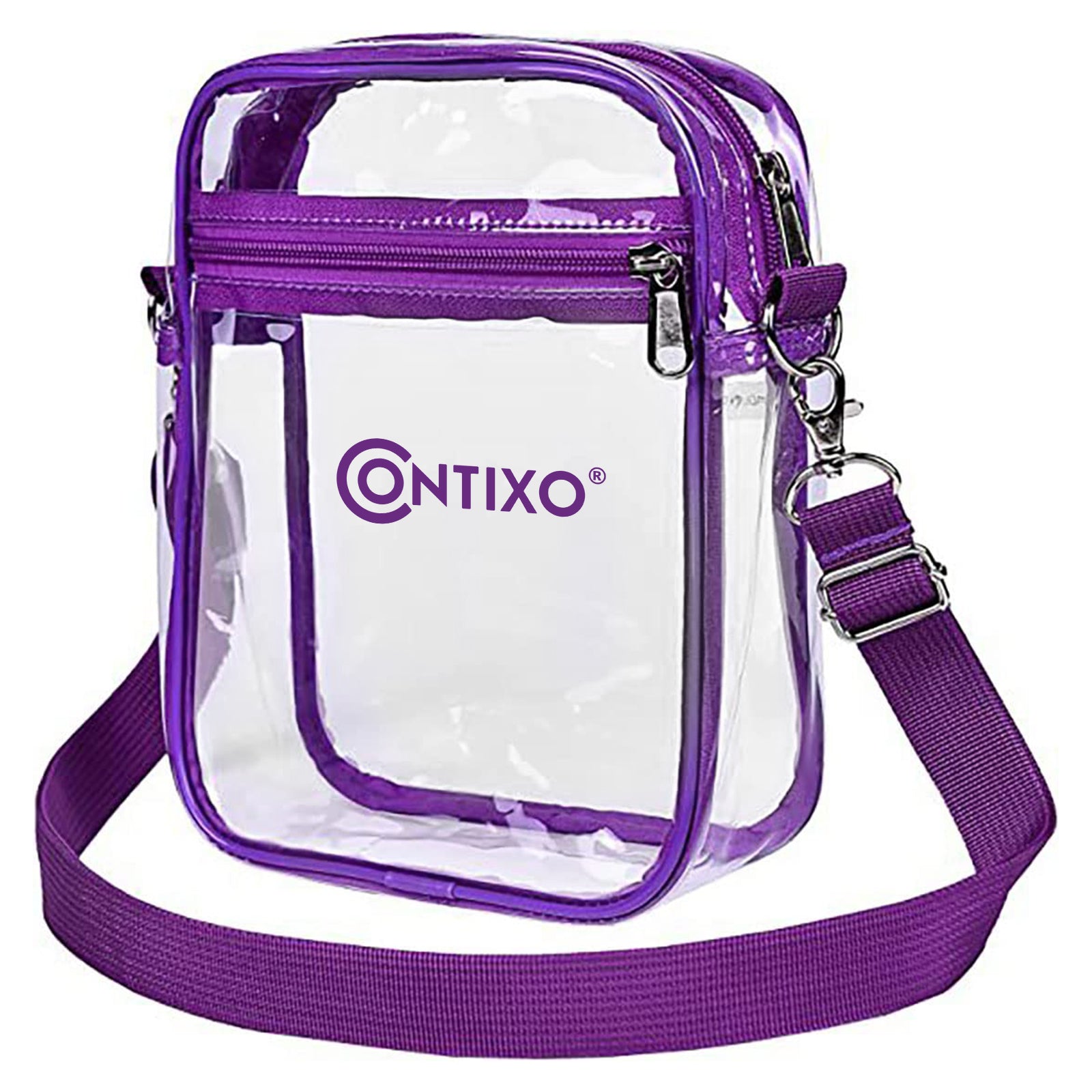 Step out in sheer style with the Contixo 7'' Clear Crossbody Bag Stadium Approved, Adjustable Strap Shoulder Bags for Concerts, Purple! Designed to blend high-street fashion with maximum functionality, this clear purse not only adheres to stadium guidelines but also keeps your essentials in plain sight at all times.