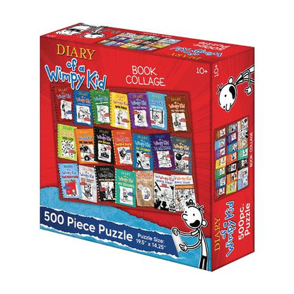 Piece the fun together with the Diary of a Wimpy Kid Book Cover 500 Piece Puzzle! This vibrant jigsaw gathers all the colorful covers from the Diary of a Wimpy Kid series, showcasing eighteen main books, the Do-It-Yourself Book, and Movie Diaries. Ideal for puzzle lovers and fans of the series, it promises hours of engaging play as you explore each unique cover.