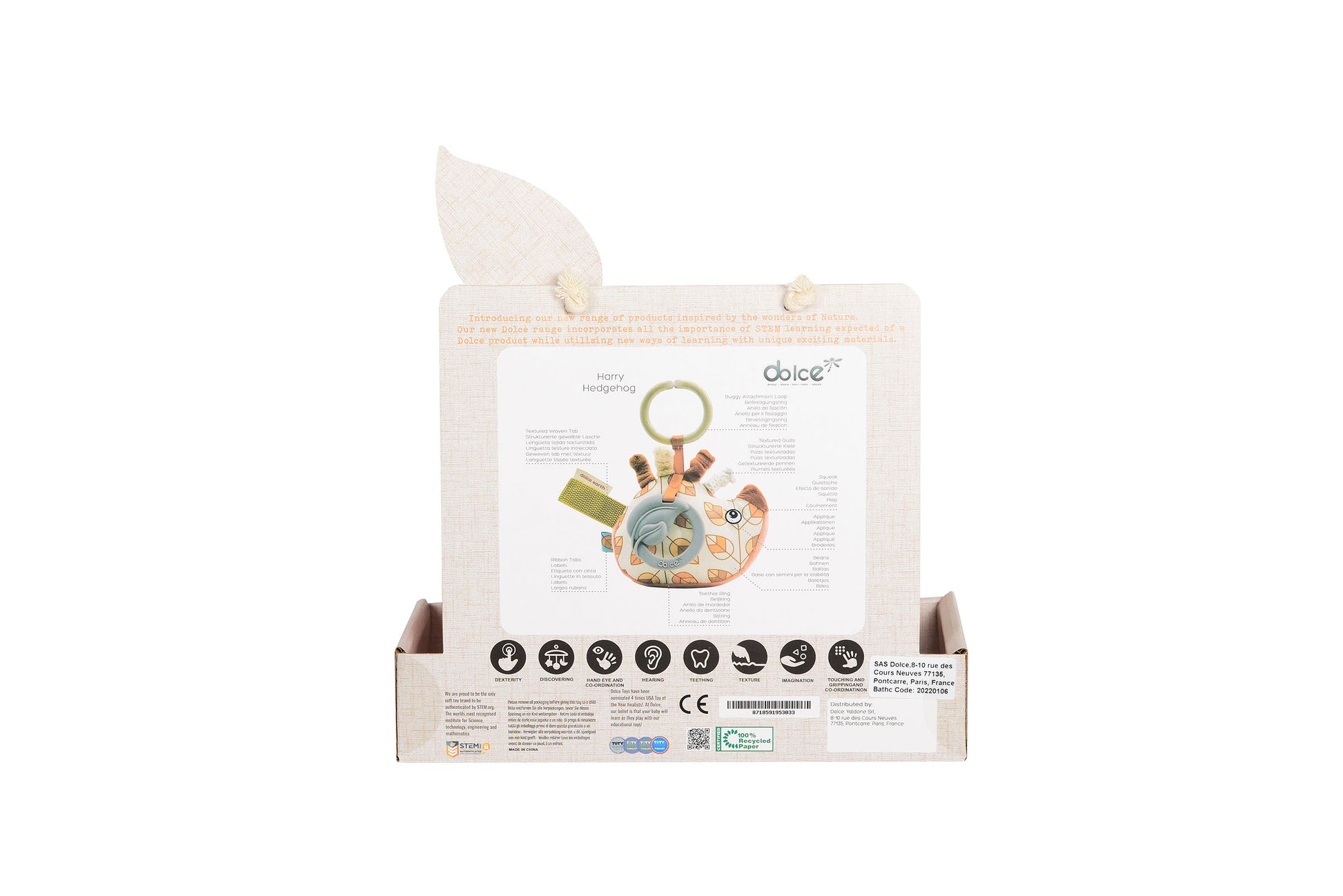 Discover sensory play with Dolce Harry the Hedgehog Interactive Plush Toy! Soothe teething gums with silicone teether, explore crinkly textures & colorful tags. Portable buggy ring for on-the-go fun. Perfect developmental toy for babies - shop now on toysrus.com!