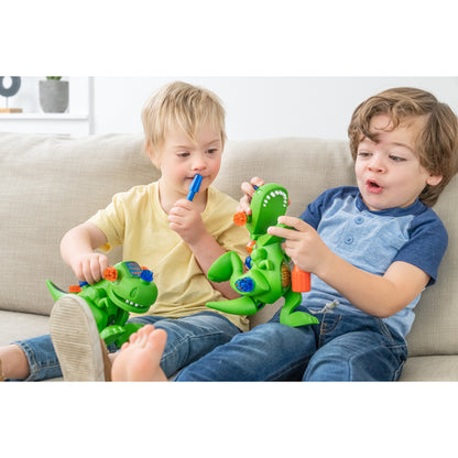Roar and explore with the Educational Insights Design & Drill T-Rex! This dynamic toy allows children to dive into hands-on fun, assembling a colorful T-Rex with a movable mouth and legs. Watch your little paleontologist develop coordination and creativity as they use a kid-friendly screwdriver to secure colorful bolts and customize their dinosaur with cool stickers. It's a thrilling adventure into the prehistoric past, no batteries required, ensuring endless imaginative play!