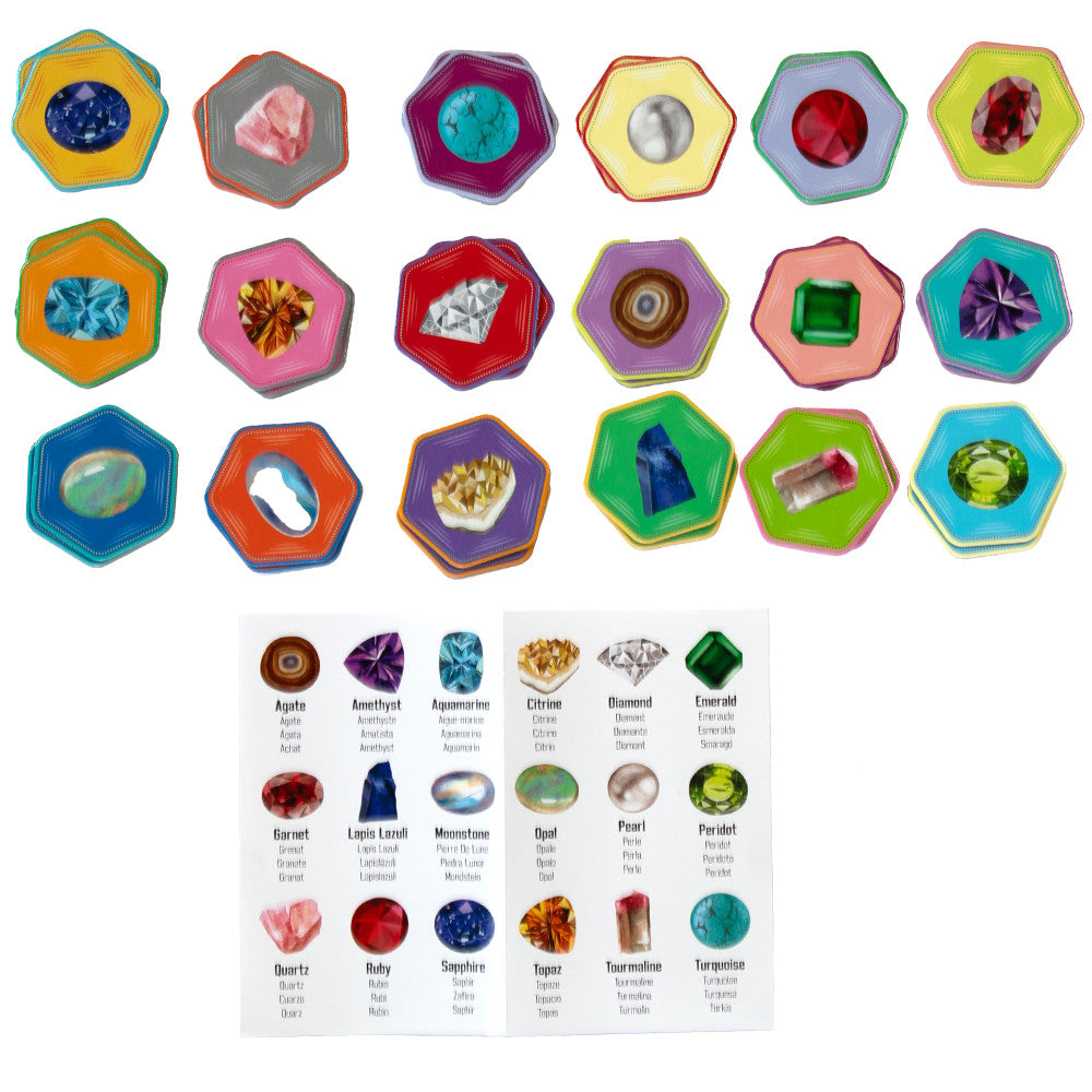 - Includes 18 pairs of beautifully illustrated gemstone tiles