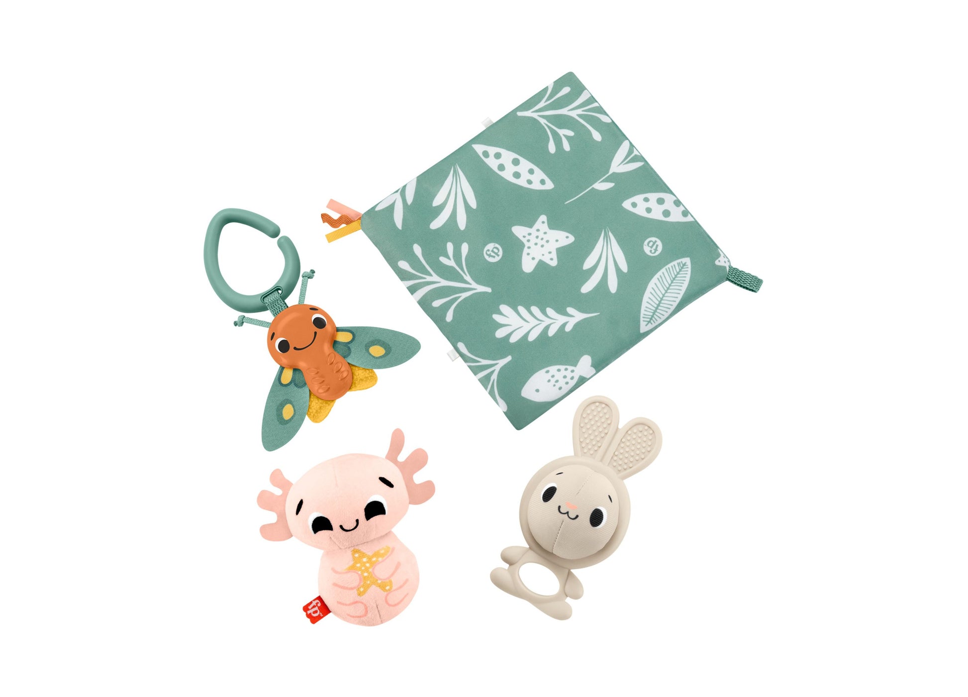 Discover sensory playtime with Fisher-Price So Many Senses Gift Set! Watch baby explore 4 engaging toys - jingle bunny teether, chiming axolotl, textured moth rattle & more. Develops fine motor skills through touch, sound & sight. Perfect baby shower gift in beautiful packaging. Shop now on toysrus.com for endless giggles & learning!