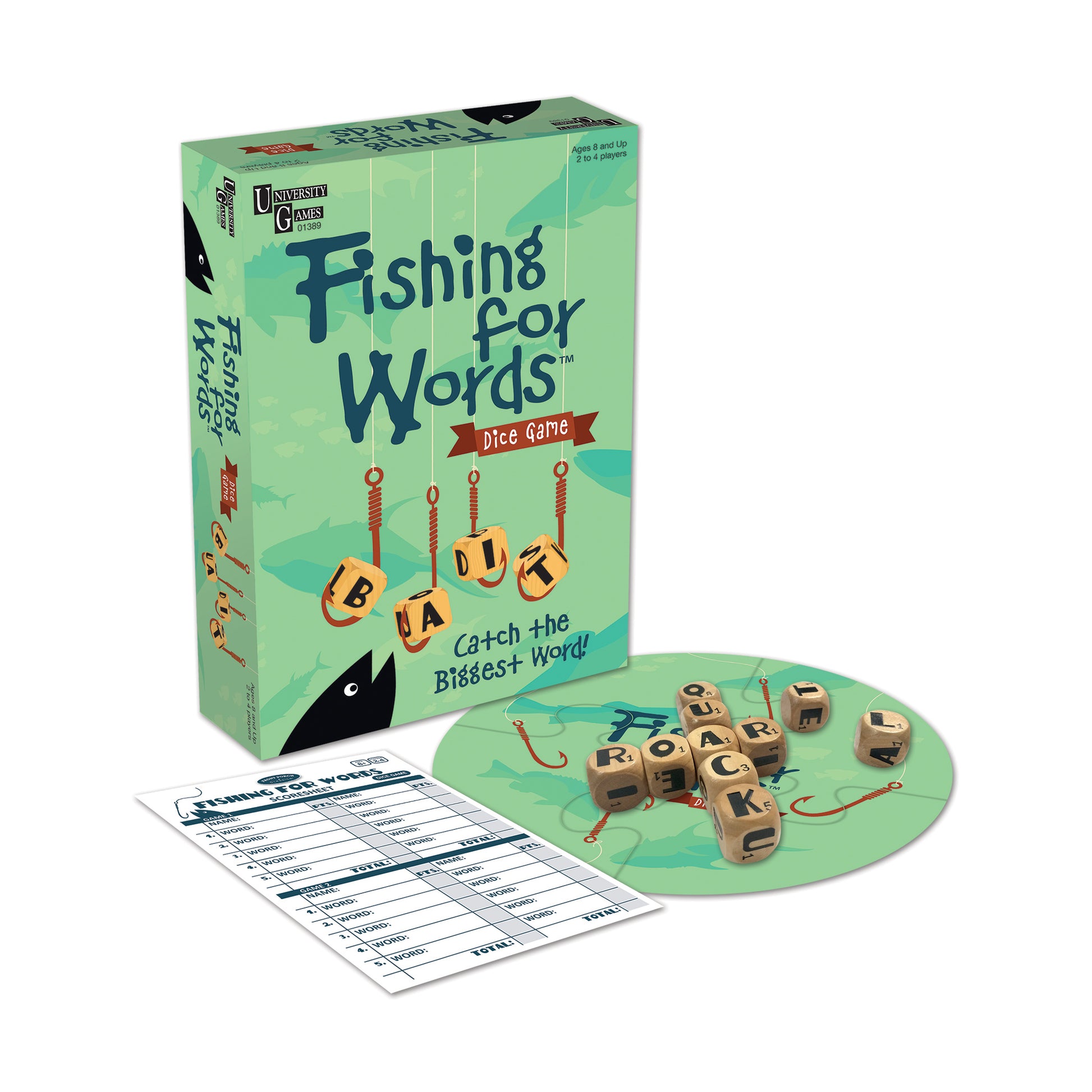 Reel in the excitement with Fishing for Words, the ultimate word-building dice game for 2-4 players! Roll the dice to create high-scoring words in thrilling 10-20 minute rounds. Perfect for ages 8+, it boosts vocabulary and critical thinking skills. Includes 10 wooden dice, mat, and score pad. Shop now on toysrus.com and make a splash at your next game night!