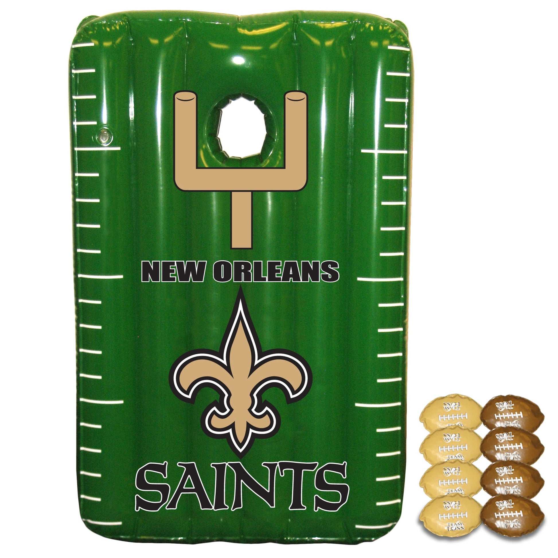Score touchdowns at your next party with this NFL Saints inflatable bean bag toss game! Perfect for tailgates, backyards & family fun. Features official team logos, 8 floating bean bags & durable vinyl construction. Ages 4+ can build coordination while showing team spirit. Shop now on toysrus.com for this must-have Saints game that brings competitive outdoor entertainment to any gathering!