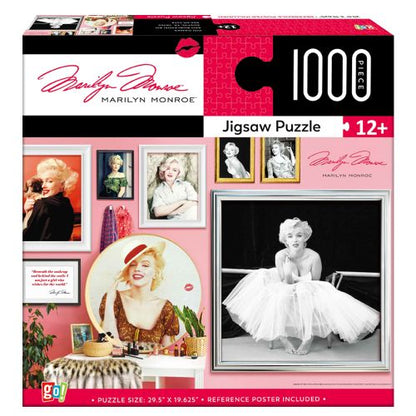 Piece together a moment in Hollywood history with the GC Marilyn Monroe 1000pc Puzzle! This glamorous puzzle makes you part of Marilyn's world, bringing a touch of classic charm right into your living room. Complete the stunning, high-resolution scene of this film icon, perfect for fans and puzzle enthusiasts alike. Revel in the challenge and be rewarded with a beautiful piece of art!