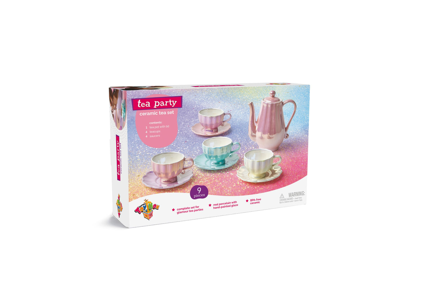 Geoffrey's Toy Box 9-Piece Ceramic Tea Party Set - Pastel Colors