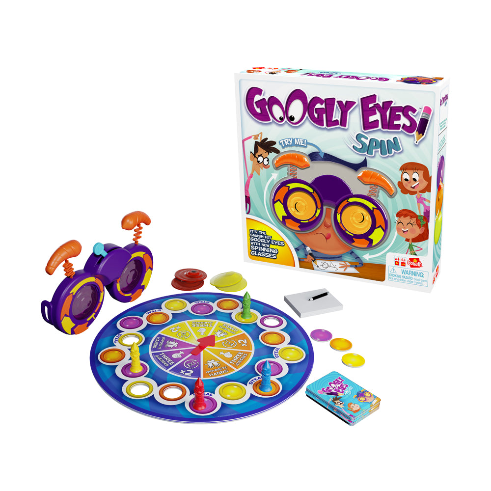 Unleash hilarious family fun with Googly Eyes Spin by Goliath! Challenge your vision and drawing skills with rotating glasses featuring 3 distorting lenses. Spin the spinner, draw clues, and guess what teammates are sketching. With 54 diverse cards across places, objects, and characters, the laughter never stops! Perfect for 4-16 players ages 7+. Encourages creativity and interaction. Shop now on toysrus.com and experience the joy of Googly Eyes Spin!