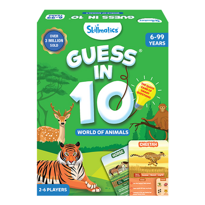Unleash your inner wildlife explorer with the Guess in 10 World of Animals game! Players challenge each other with up to 10 yes or no questions to guess the animal on the Game Card. Use your clue cards wisely to be the first to win 7 Game Cards. This engaging game not only entertains but also educates players about various animals and their traits, making it a perfect choice for family game nights and parties.