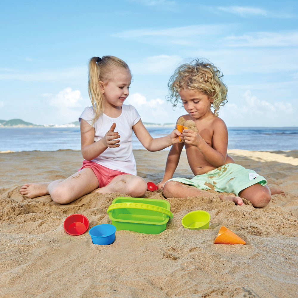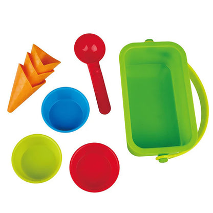 Scoop up a storm with the Hape: Ice Cream Shop - 8pc Playset! Perfect for sandy concoctions, this delightful set turns your little one's sandbox or beach day into a bustling ice cream stand. With its bright, durable pieces, children can create towering ice cream cones or fill cups with colorful sandy treats, enhancing their creativity and fine motor skills.