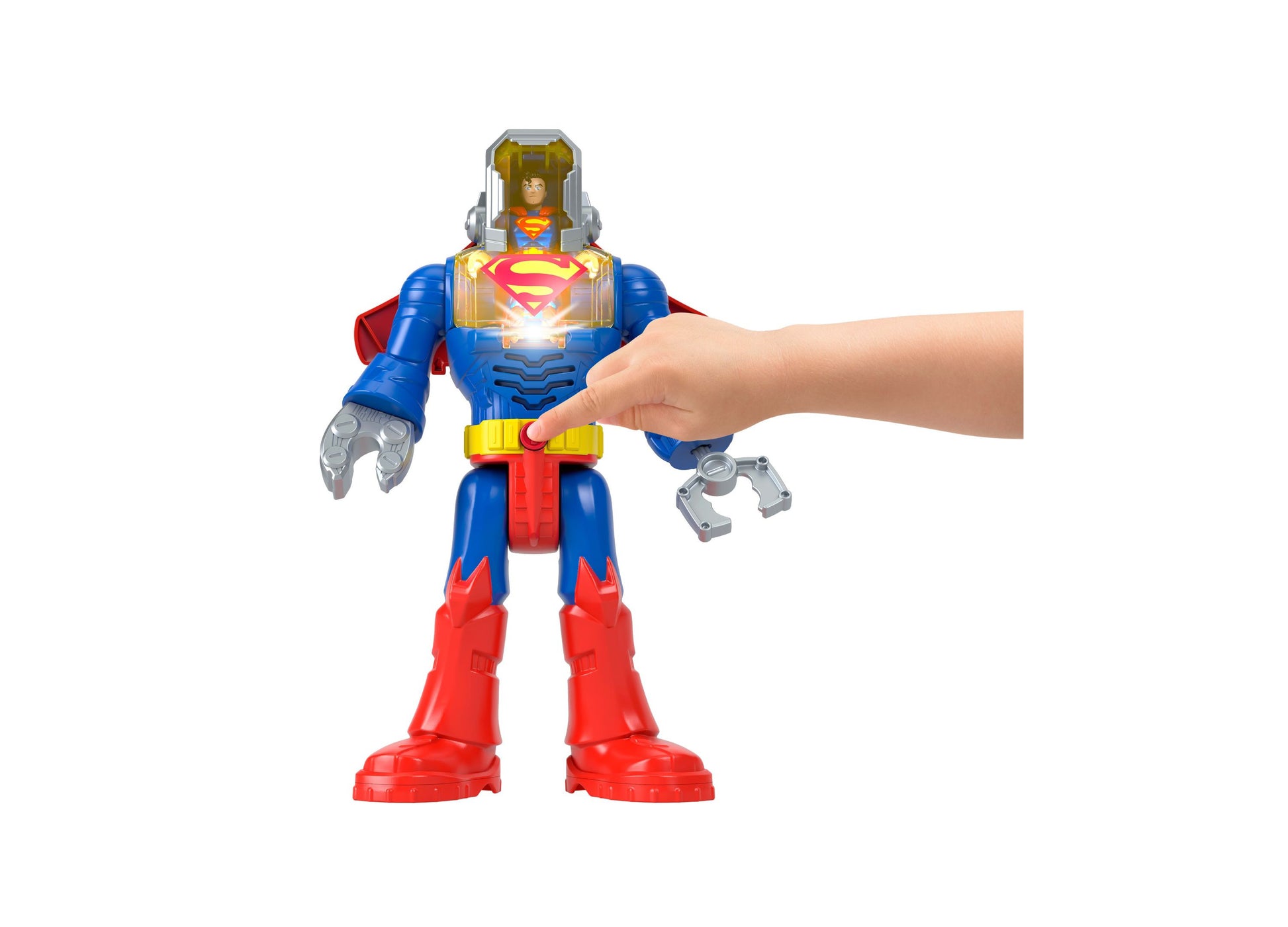 The Imaginext DC Super Friends Superman Insider Exo Suit Robot features: