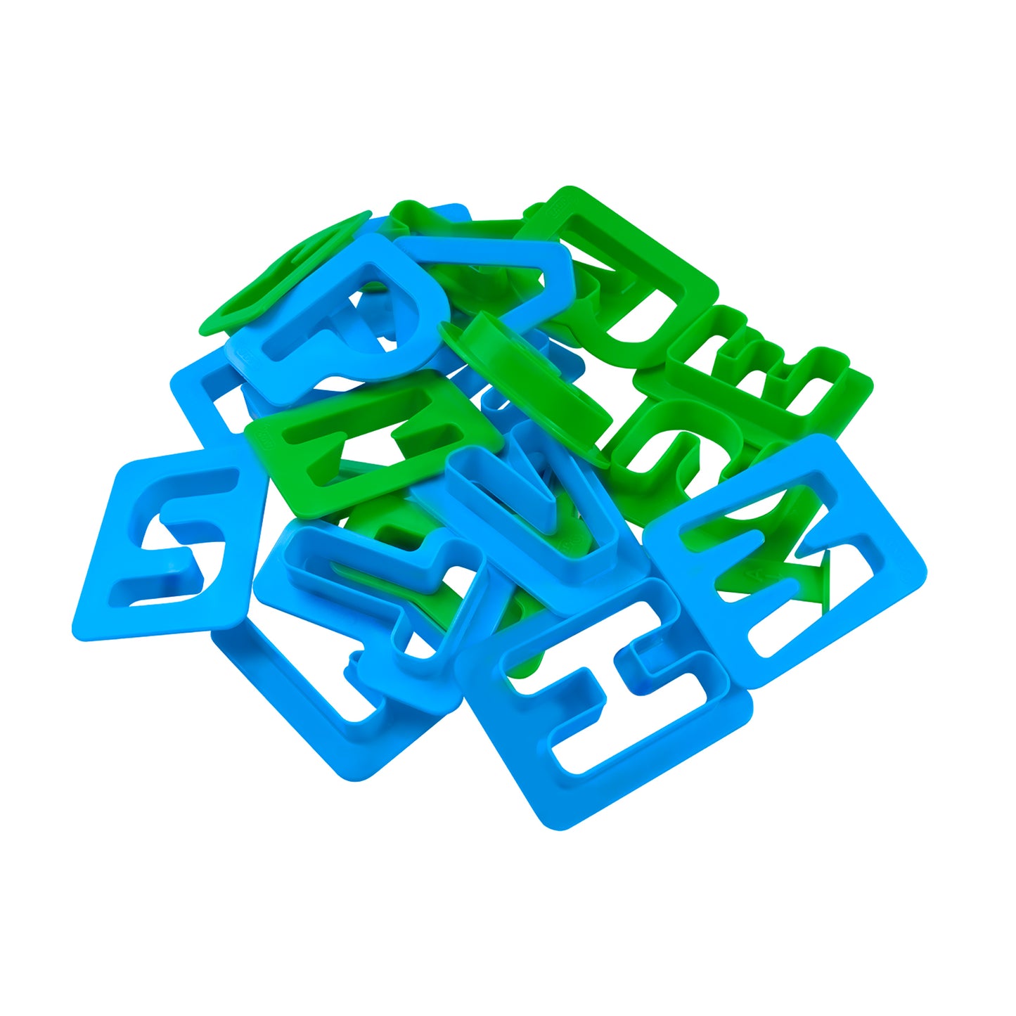 - Includes letter, number, and geometric shape molds