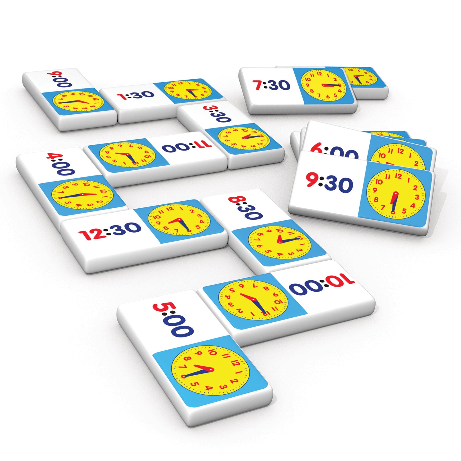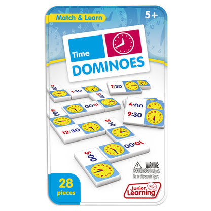 The Junior Learning Time Dominoes features: