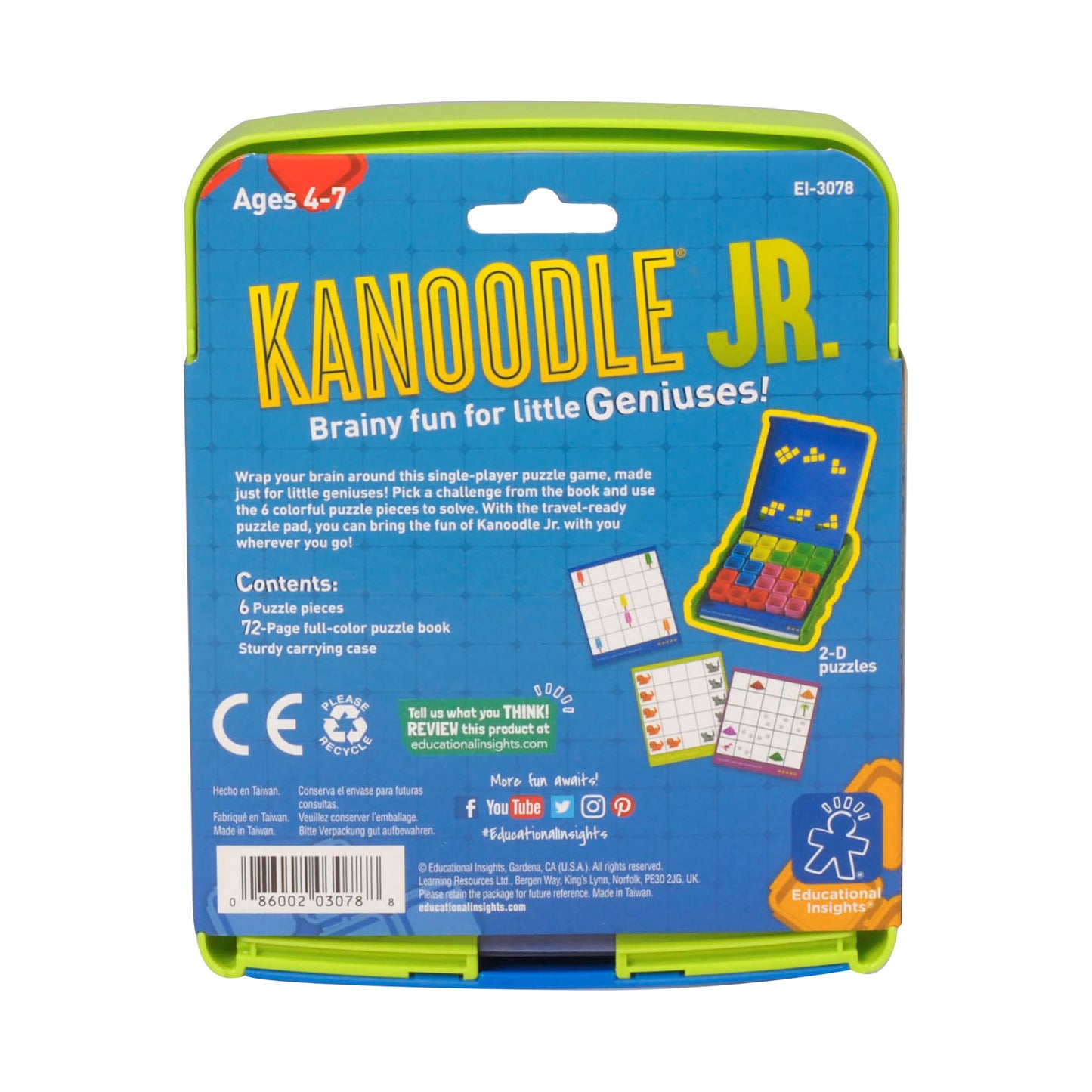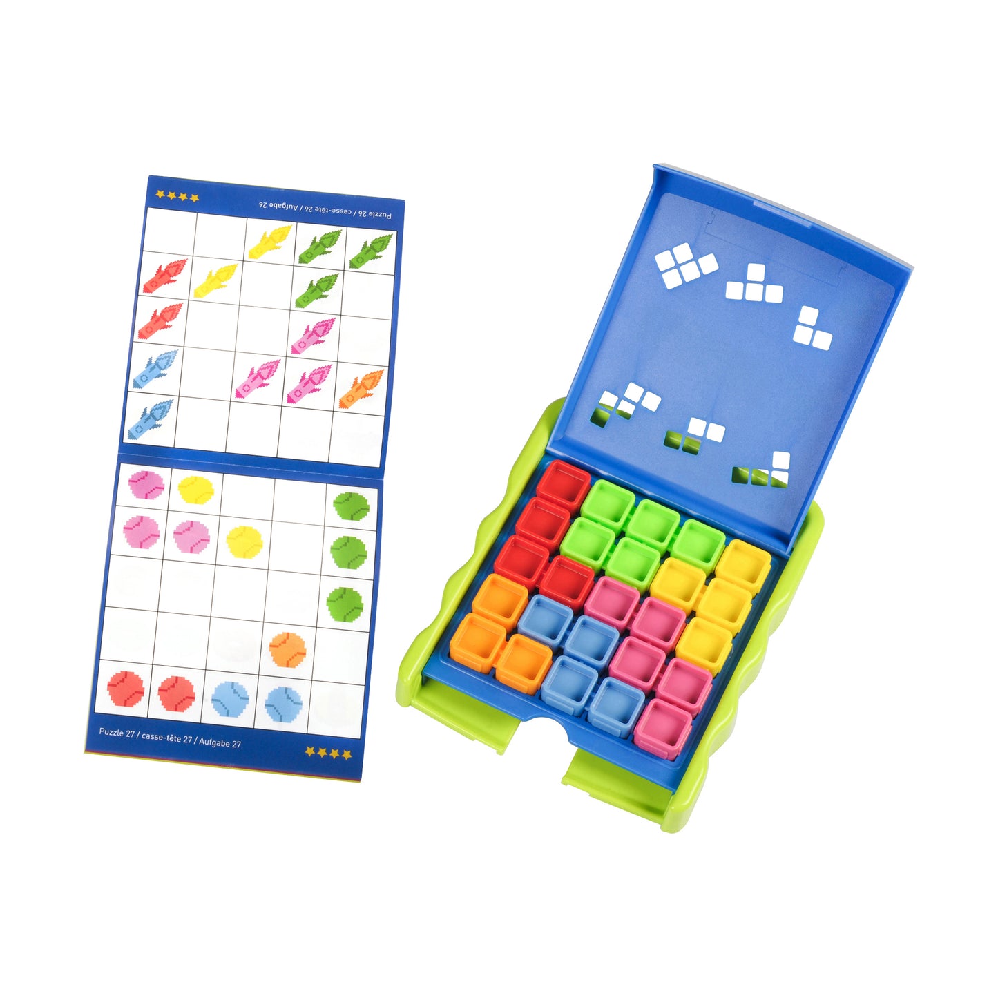 The Kanoodle Jr. Spatial Reasoning Puzzle Game features: