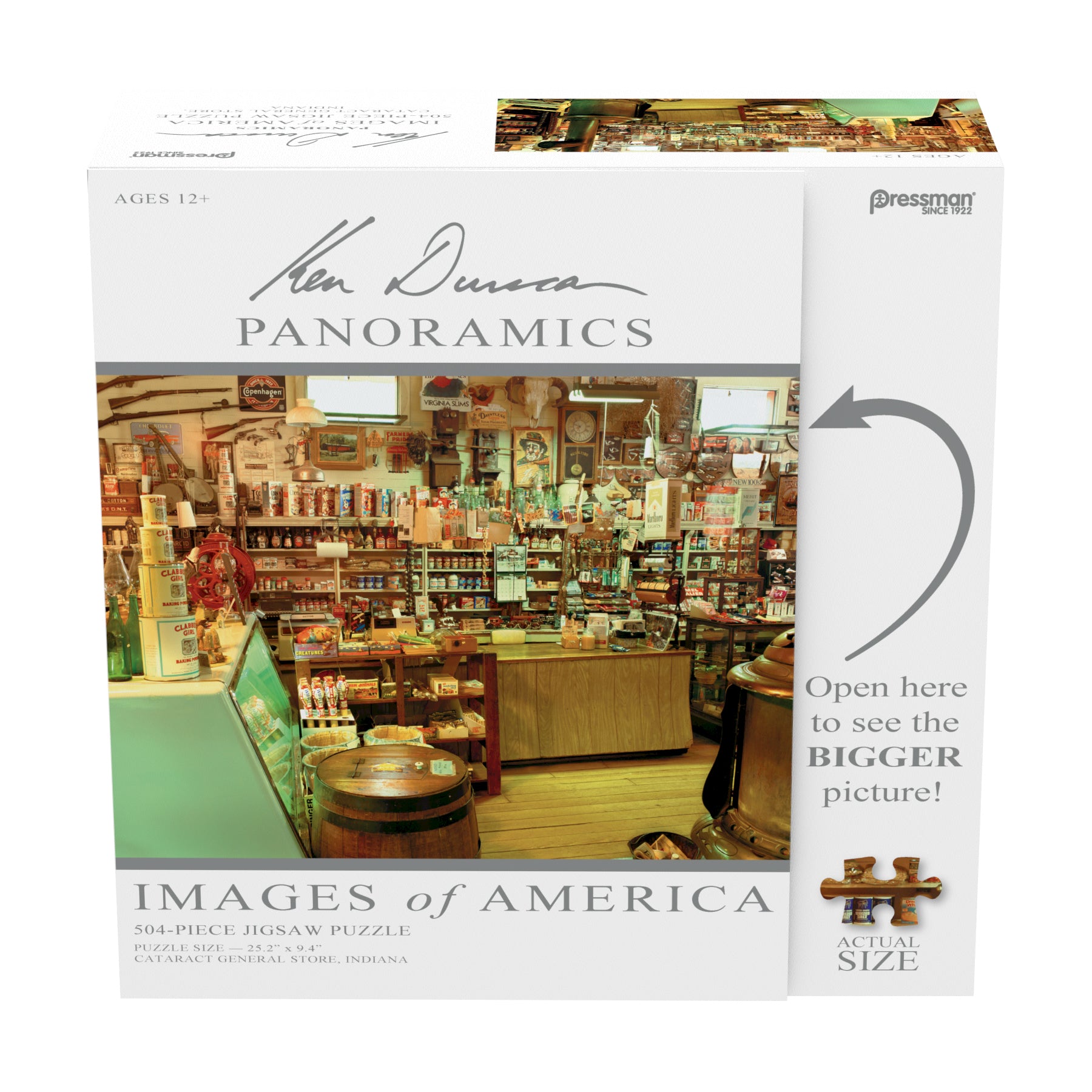 Piece together a portal to the past with the breathtaking 'Ken Duncan Panoramics: Images of America - Cataract General Store, Indiana: 504 Pcs'. This extraordinary puzzle invites you to reconstruct a slice of American heritage captured by the illustrious Ken Duncan, renowned for his panoramic snaps of mesmerizing landscapes. Discover the old-world charm of the historic Cataract General Store, an establishment steeped in history since 1860, through 504 finely-crafted pieces.