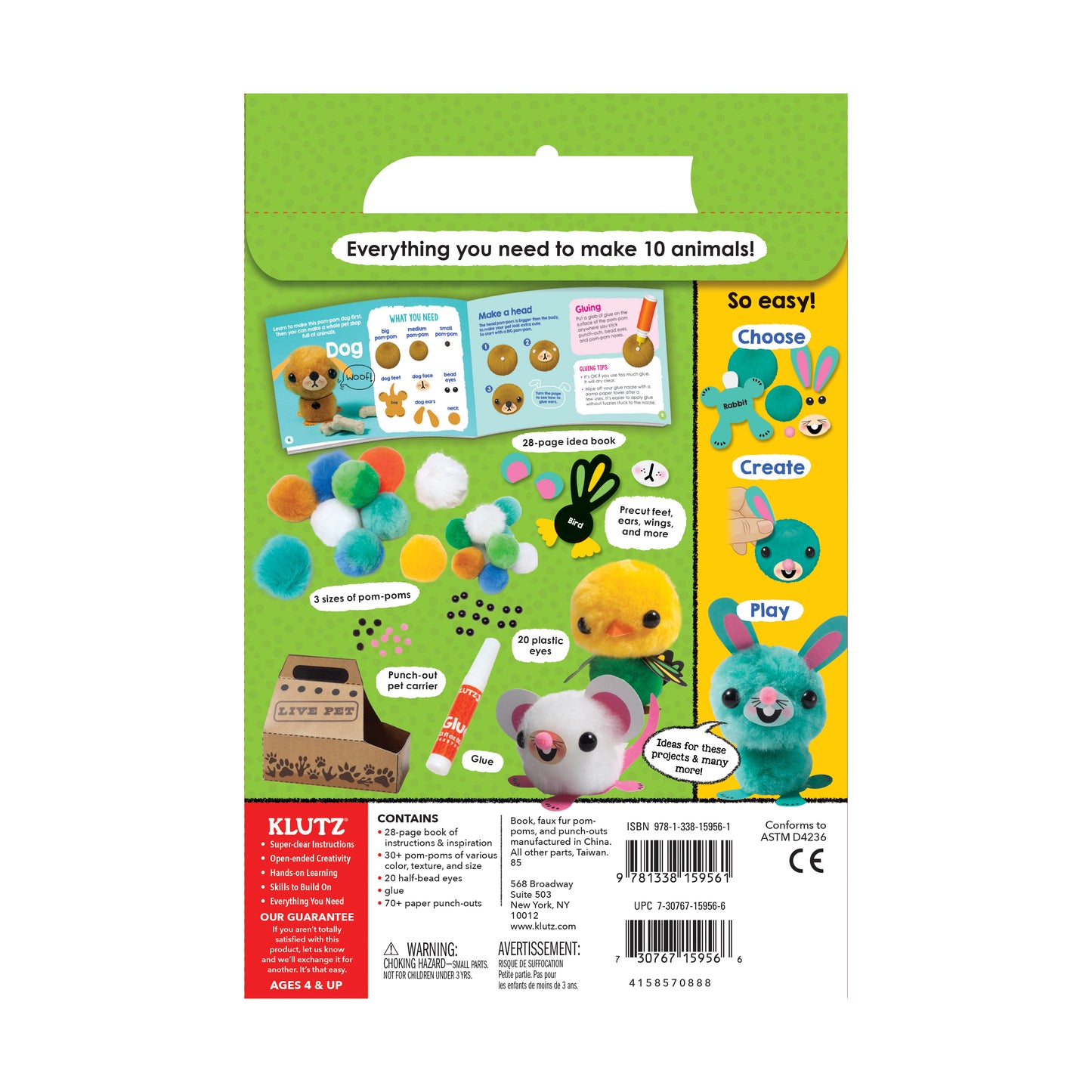 The Klutz Jr. My Pom-Pom Pet Shop features: