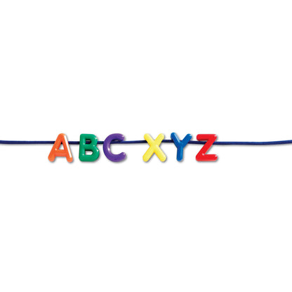 The Learning Resources Plastic Lacing Uppercase Alphabet features: