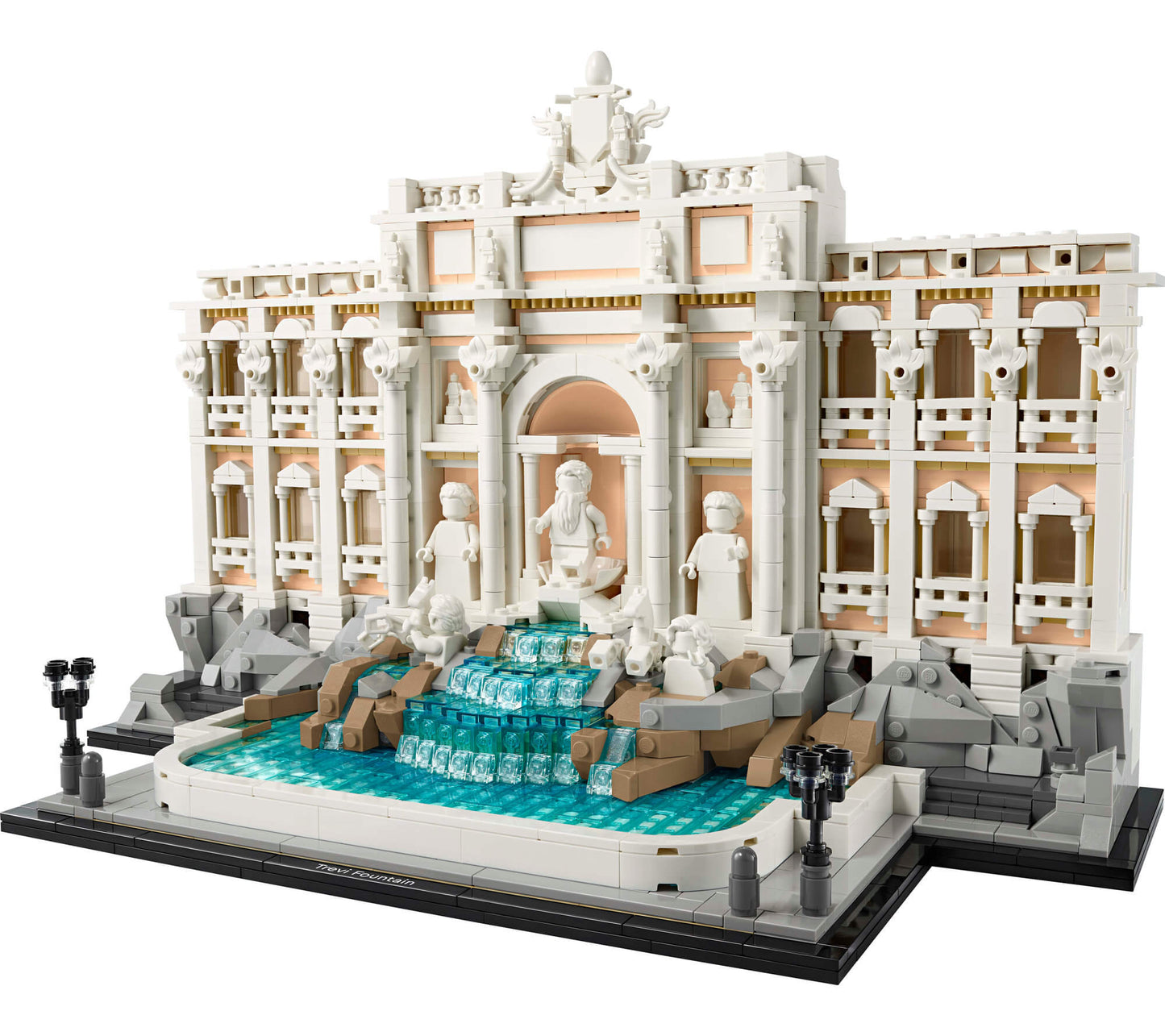 The LEGO Architecture Trevi Fountain Model features: