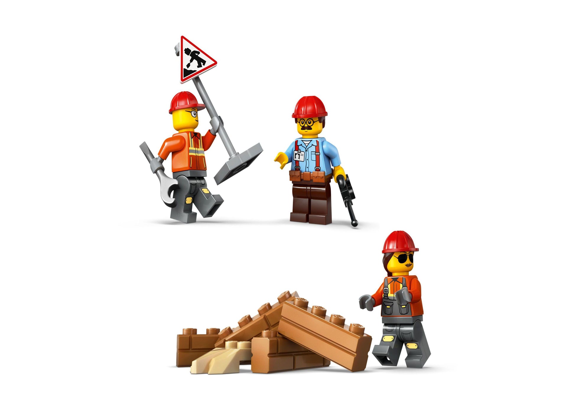 • Includes driver and two construction workers