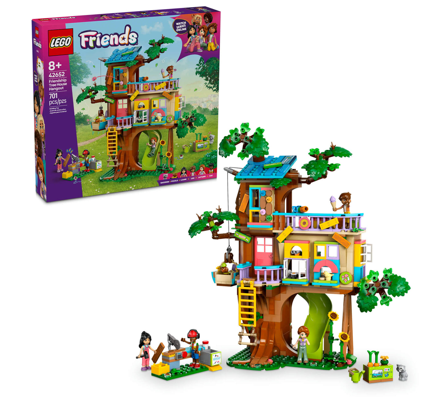 Embark on treetop adventures with the LEGO Friends Friendship Tree House Hangout 42652! Construct a multi-level wonderland with 4 minidolls, a slide, elevator & hidden surprises. Spark endless creative play & imagination! Shop now on toysrus.com for this delightful building kit.