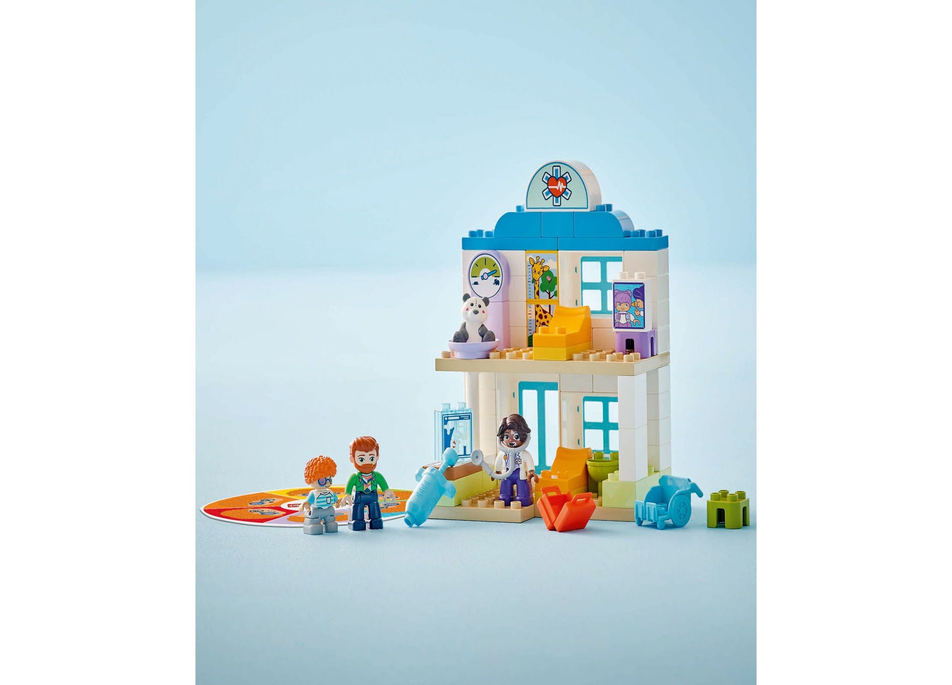 The LEGO DUPLO Town First Time Visit with the Doctor Office Building Toy Playset 10449 features: