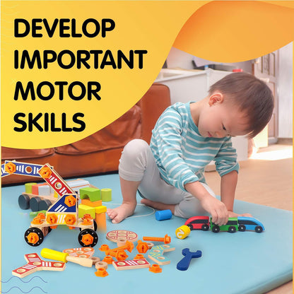 Ignite imaginative play with the LEO & FRIENDS 72-Piece Wooden Builder Construction Set! Watch your child's creativity soar as they build, design, and problem-solve with colorful, non-toxic wooden pieces. Gears and bolts add exciting variety to their creations. The perfect gift for ages 3+. Shop now on toysrus.com for endless hours of safe, sustainable fun!