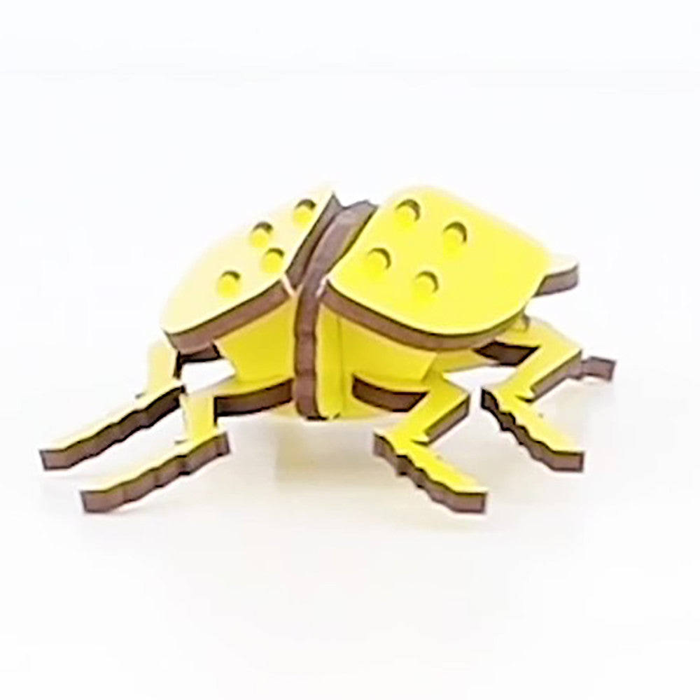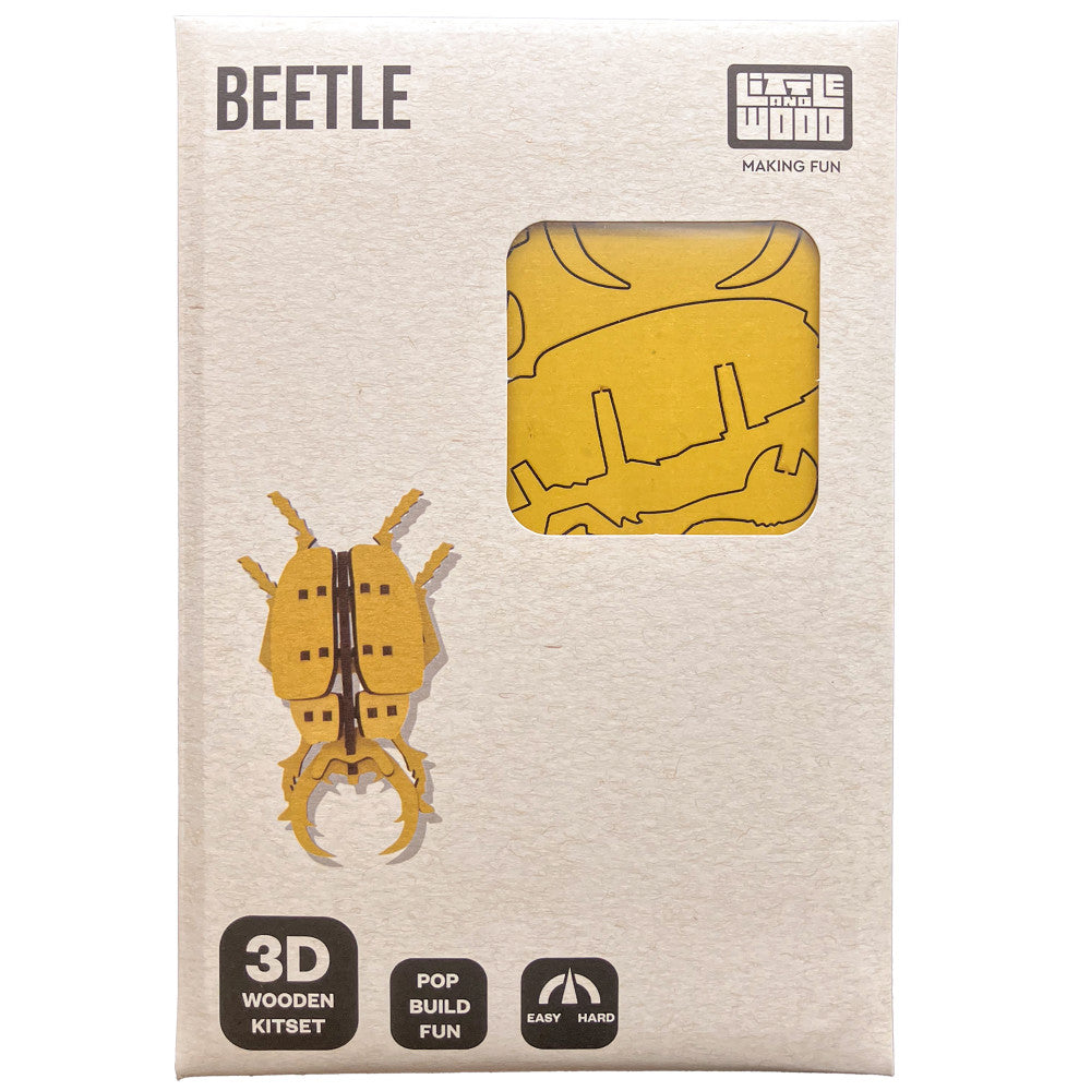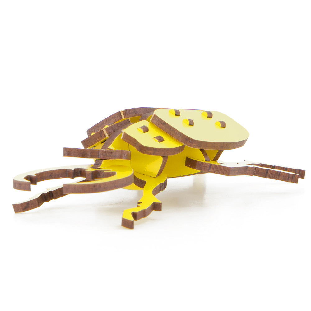 Assemble a buzz of excitement with the Little & Wood: Woodlet: Small - Beetle - Yellow, 3D Wooden Kit-Set! This vibrant 3D puzzle brings the fascinating world of beetles right into your hands. Perfect for DIY enthusiasts and budding entomologists, it offers a delightful challenge that transforms flat wood pieces into a stunning three-dimensional beetle. Revel in the joy of creation and learn about the intricacies of beetle life, all while supporting sustainable fun!\n\n- Suitable for ages 6 and up: fun for the whole family!\n- Pop-out wooden pieces: no tools necessary!\n- Made with 100% sustainably sourced wood.\n- Includes easy-to-follow visual instructions.\n- Manufactured with pride in New Zealand, using eco-friendly practices.