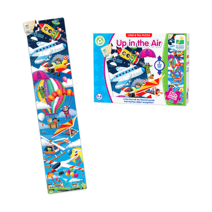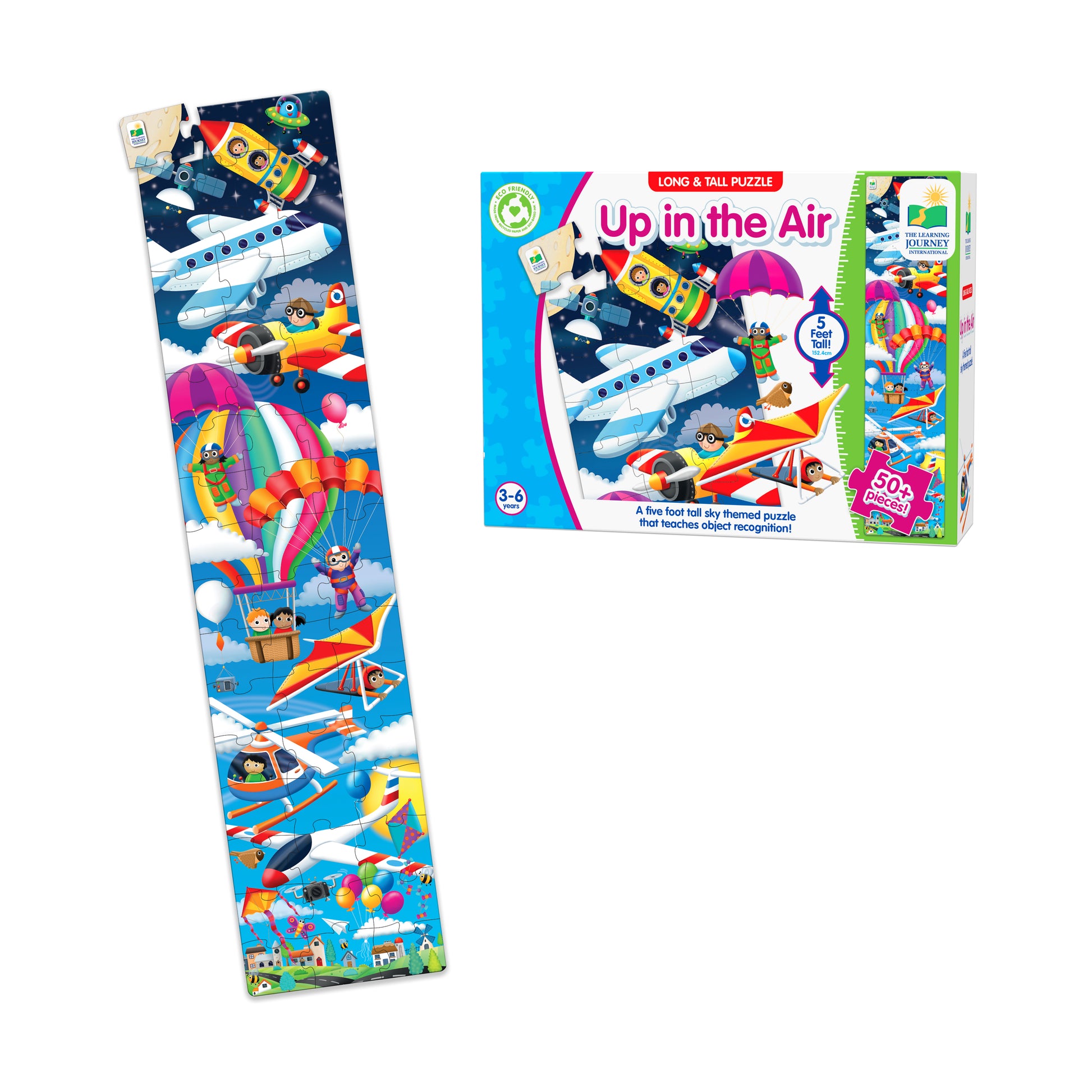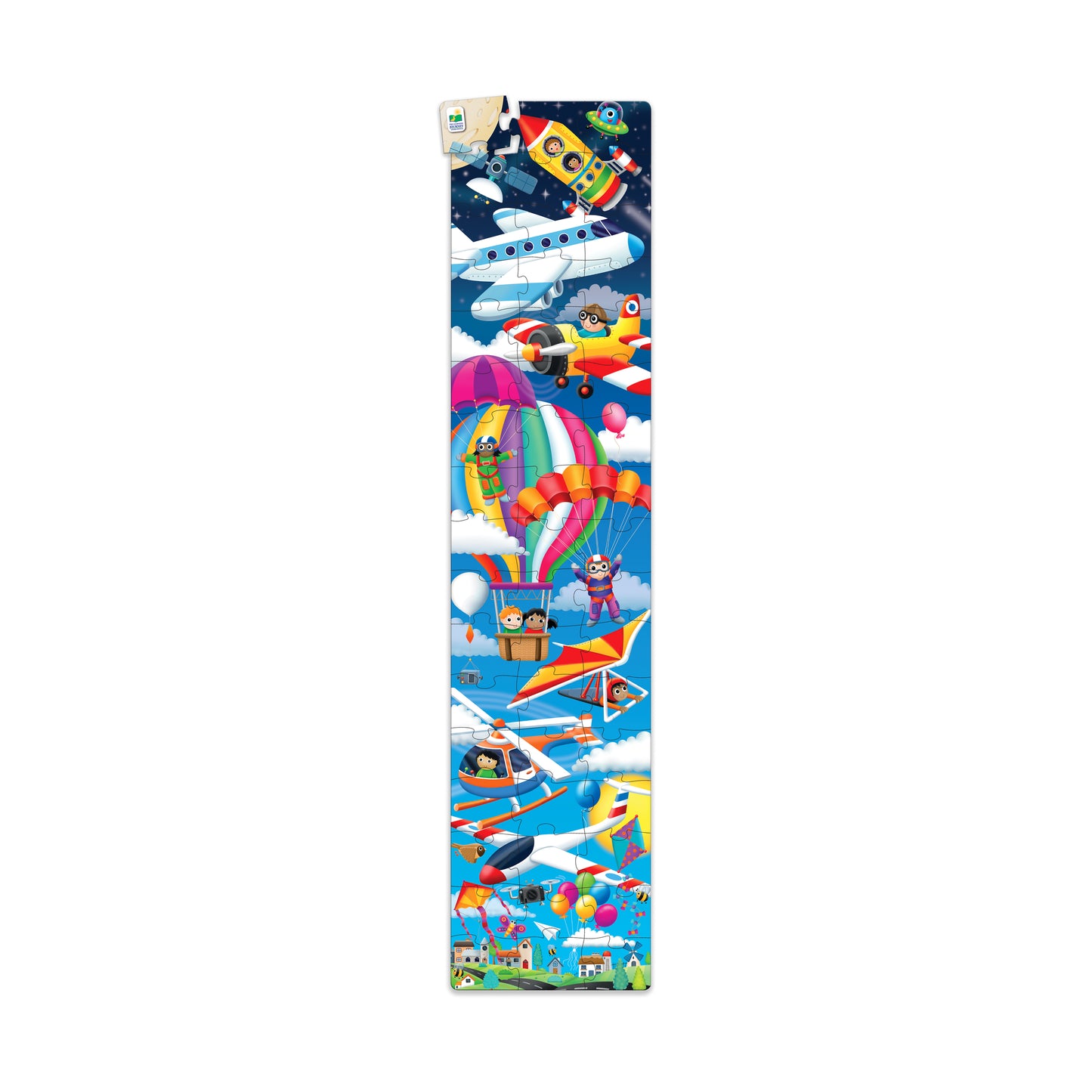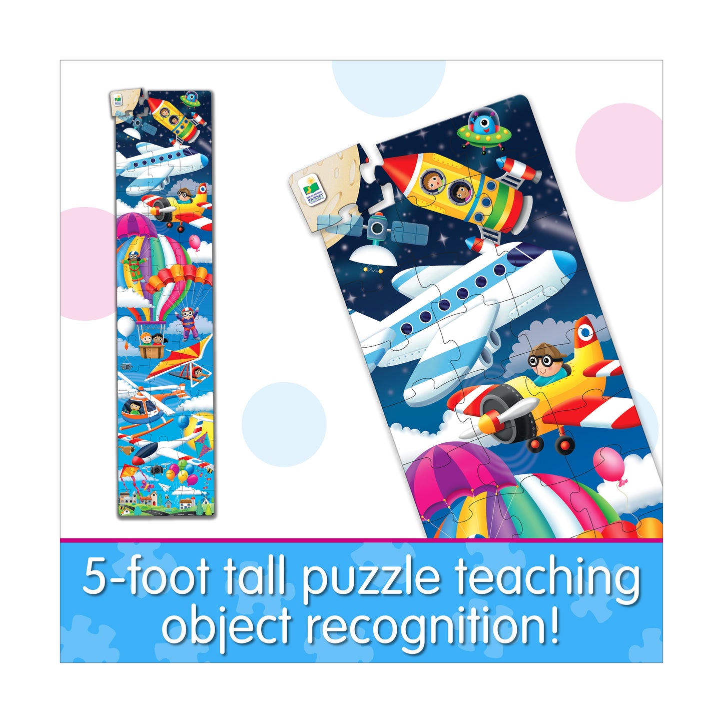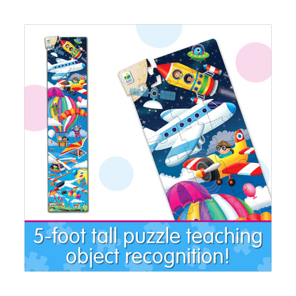 Soar to new heights of fun with the Sky-High Adventure Floor Puzzle - Up in the Air! Towering up to five feet tall, this jumbo 51-piece puzzle invites eager young aviators to explore the captivating world above us. Watch as your little ones piece together an array of fantastical flying machines, from zippy airplanes to soaring spacecrafts, igniting their imaginations and giving a boost to their motor skills with each oversized, easy-to-handle piece.