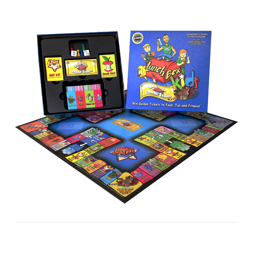 The LunchBox Kids Health & Fitness Educational Board Game features: