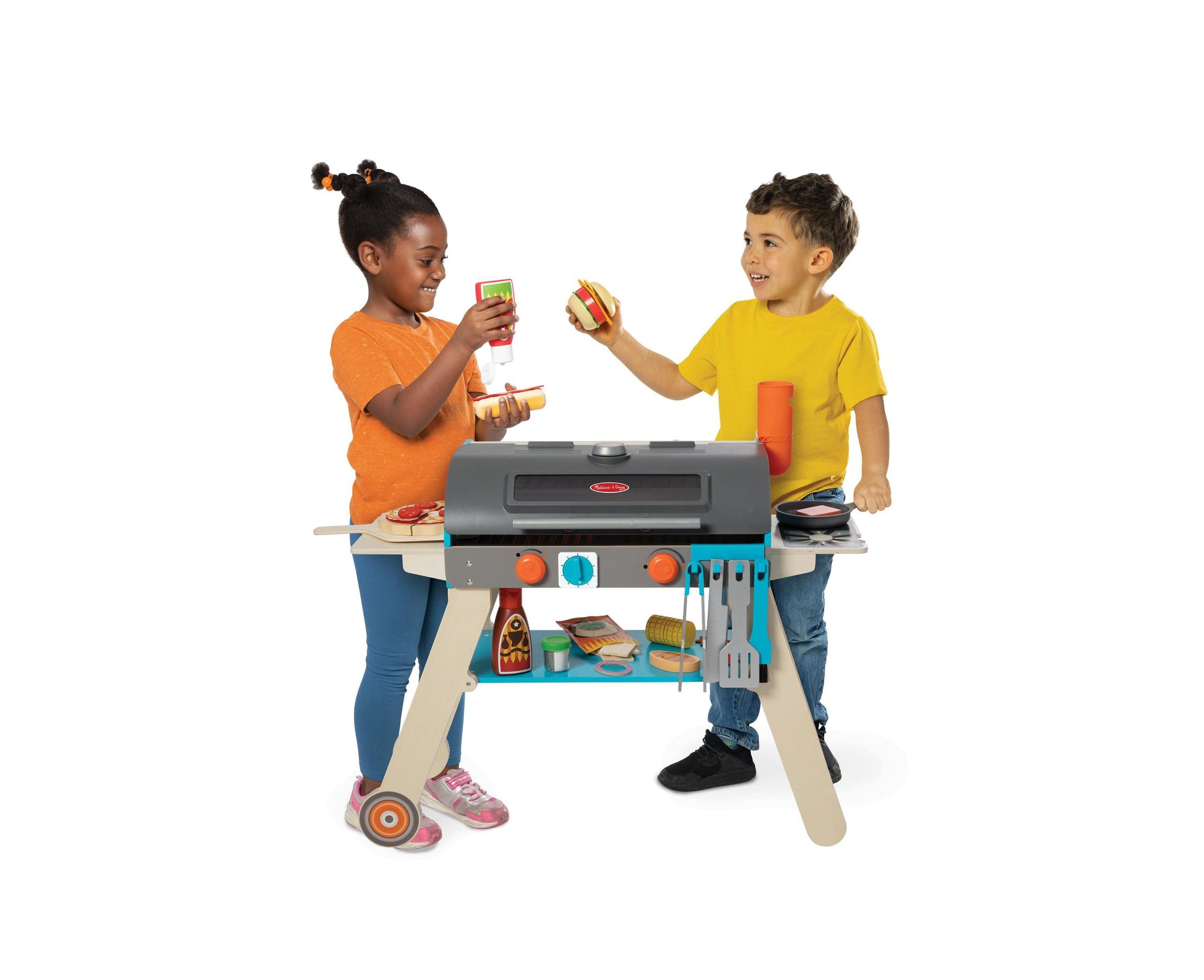 Ignite imaginative play with the Melissa & Doug Deluxe Wooden BBQ Grill and Pizza Oven Playset! Sizzle up felt pizzas, grill tasty BBQ treats, and serve imaginative feasts. Sturdy wooden design packed with utensils and play food enhances fine motor skills and encourages role-playing fun. Shop now on toysrus.com and let the backyard culinary adventures begin!