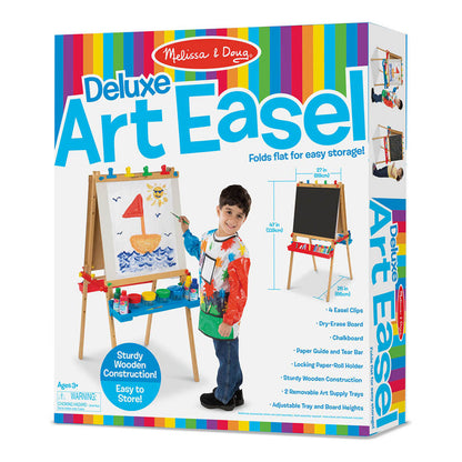 The Melissa & Doug Deluxe Wooden Standing Art Easel is a canvas for your child's boundless creativity! Boasting a double-sided design with a dry-erase board on one side and a chalkboard on the other, this easel is perfect for crafting masterpieces. Adjust the height as your little artist grows, and watch their skills and confidence flourish!