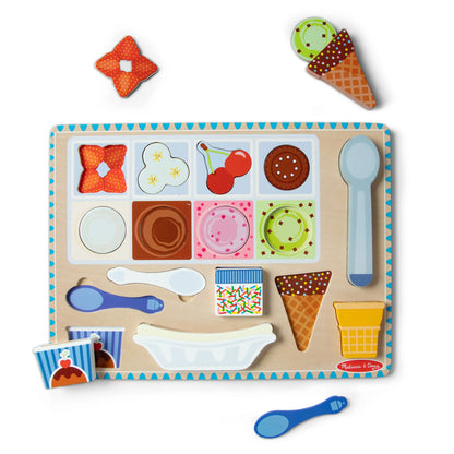 The Melissa & Doug Wooden Magnetic Ice Cream Puzzle Play Set features: