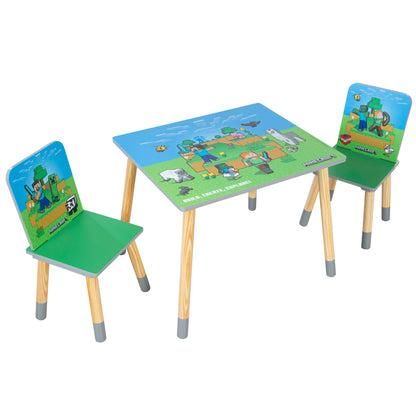 Bring the world of Minecraft to life with the Minecraft Adventure Kids Wooden Table & 2 Chairs Set! Featuring vibrant green and blue colors and dynamic Minecraft-inspired designs, this sturdy set sparks creativity and imagination. Perfect for crafting epic plans or enjoying snacks after adventurous days, it's a must-have for ultimate Minecraft fans. Shop now on toysrus.com and transform any playroom into a Minecraft universe!